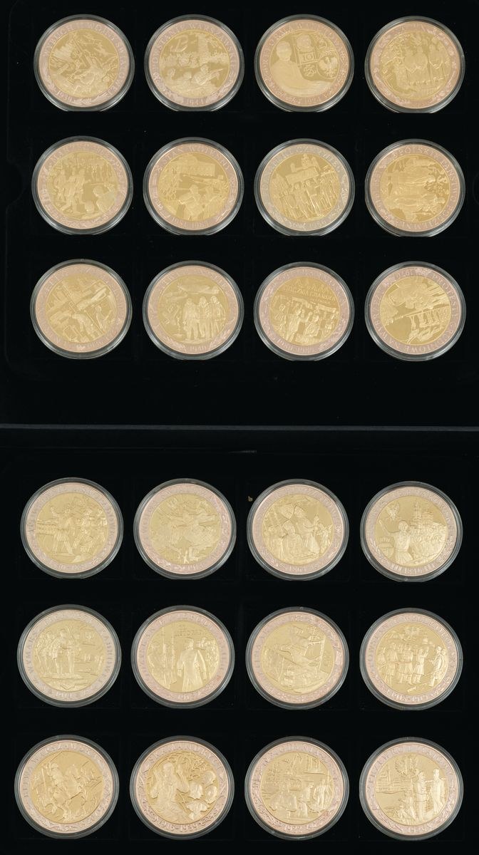 24 medale, mosiądz, uszlachetnienie dwoma rodzajami złota, śr. 45 mm, waga po 34,45 g