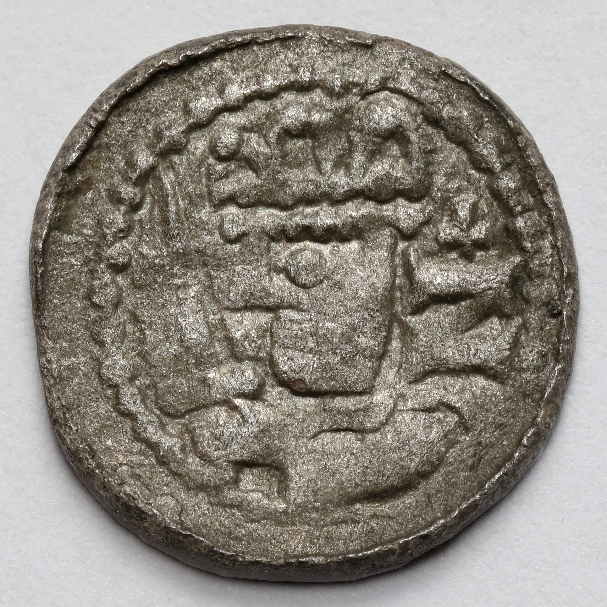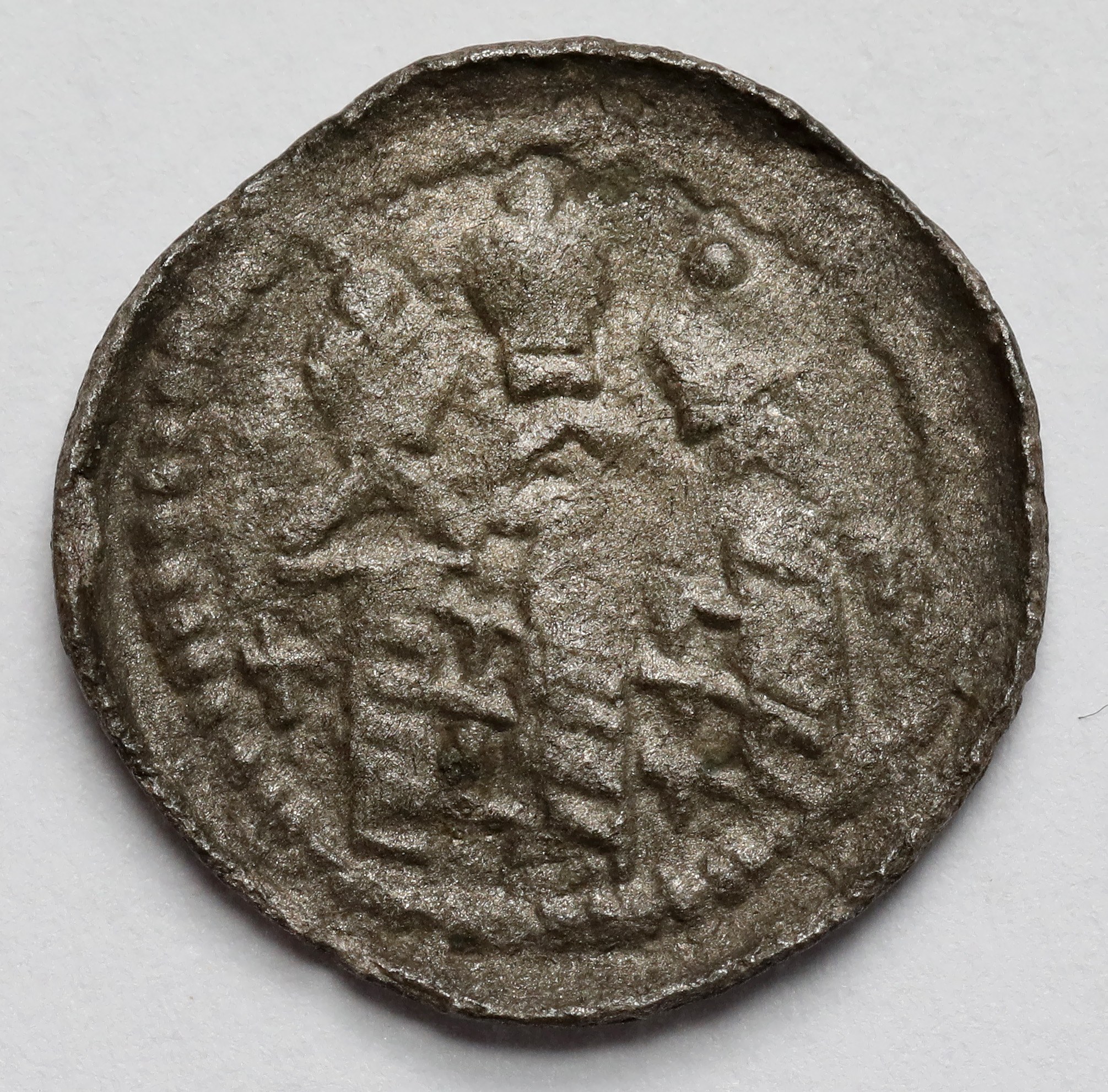 Rzadki denar królewski, wybity w latach 1076-1079, którego charakter podkreśla korona na głowie monarchy.