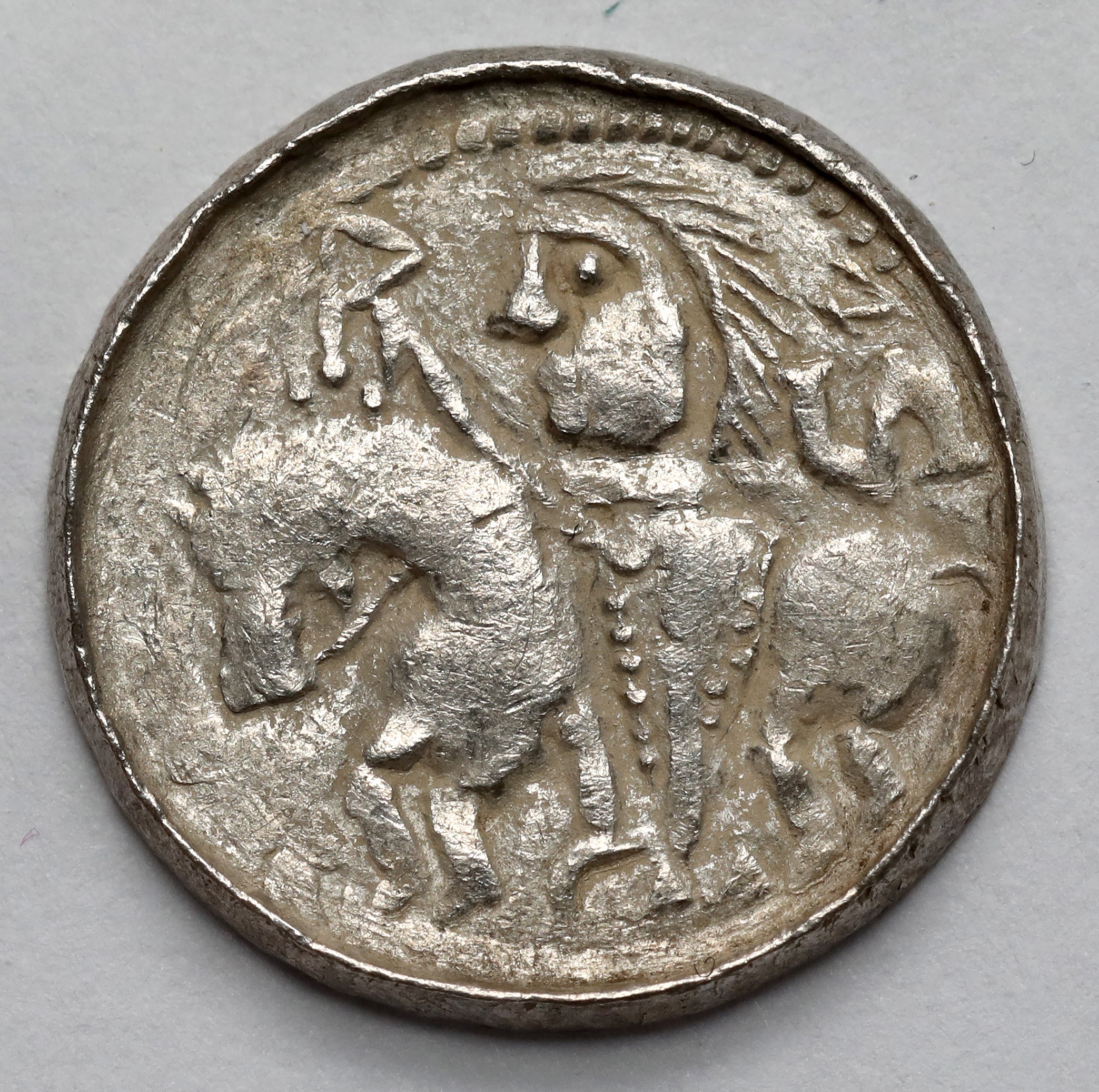 Pierwszy typ monet Bolesława Szczodrego. Jego książęcy denar, z mennicy w Krakowie, datowany na lata 1070-1076.