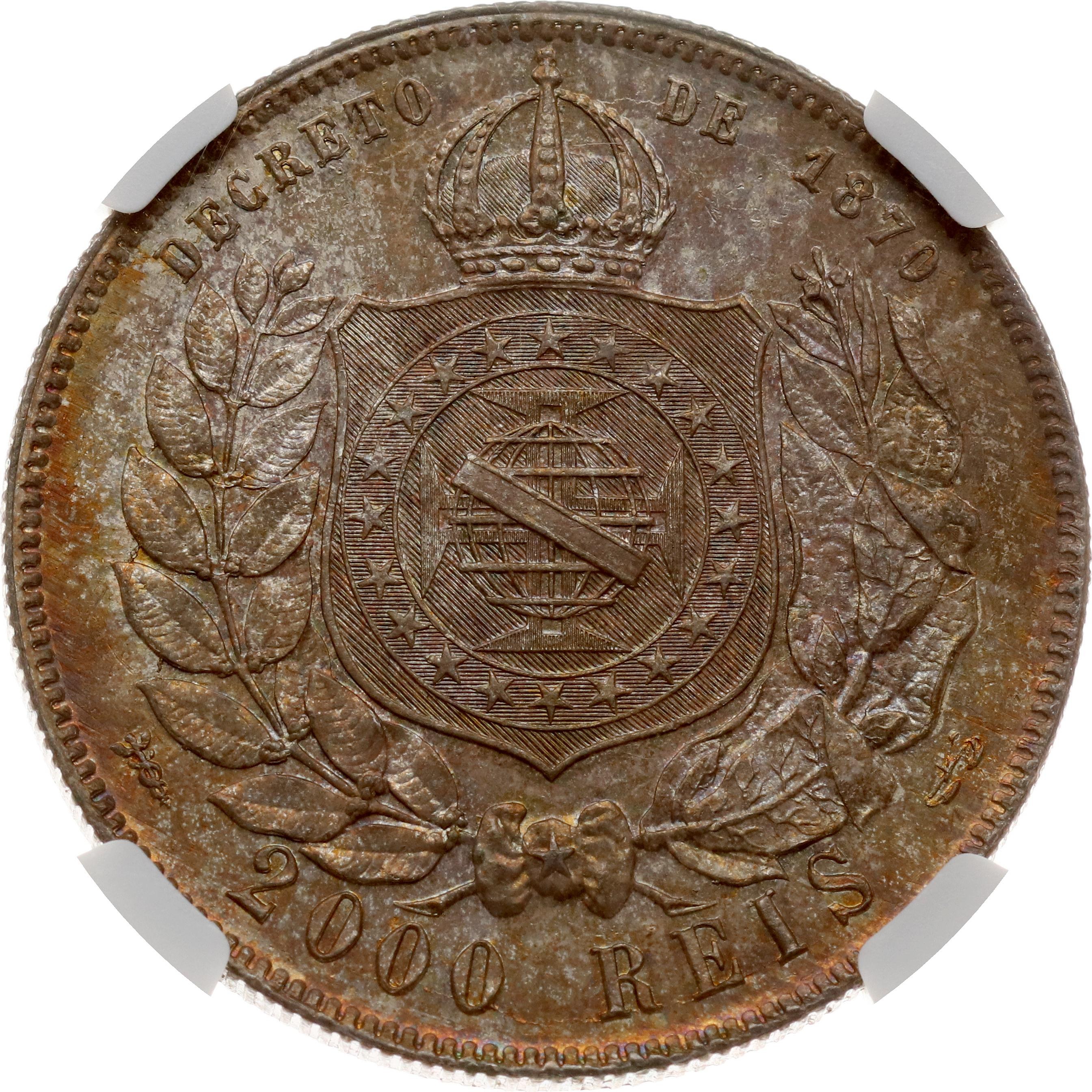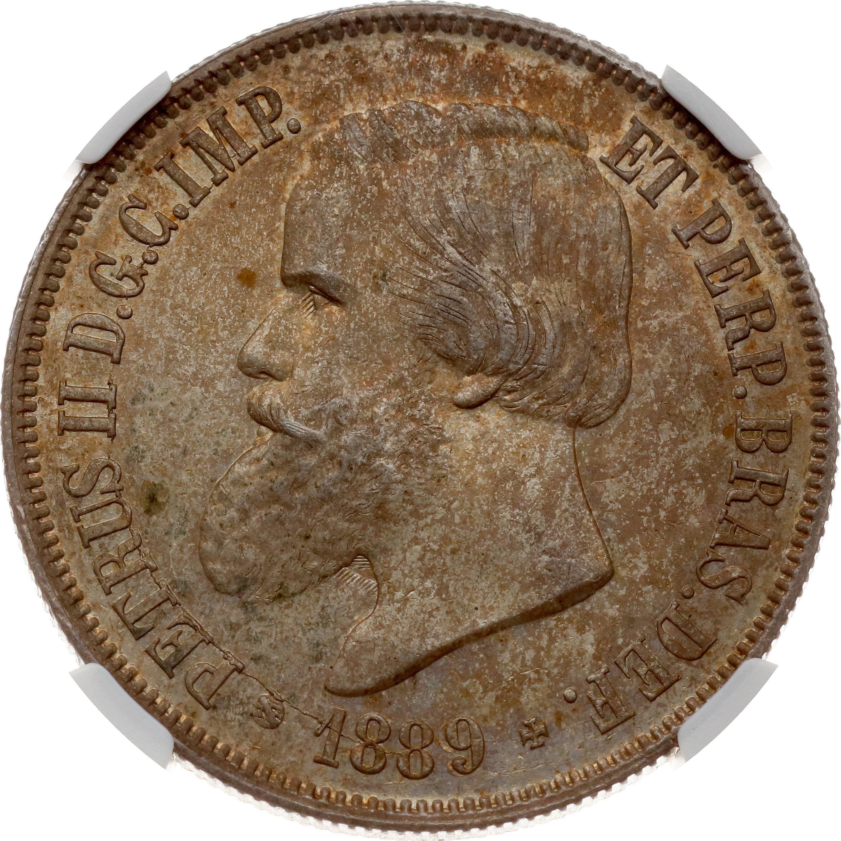 Brazil. Peter II (1831-1889). 2000 Reis 1889. Silver. KM 485. NGC MS 61.