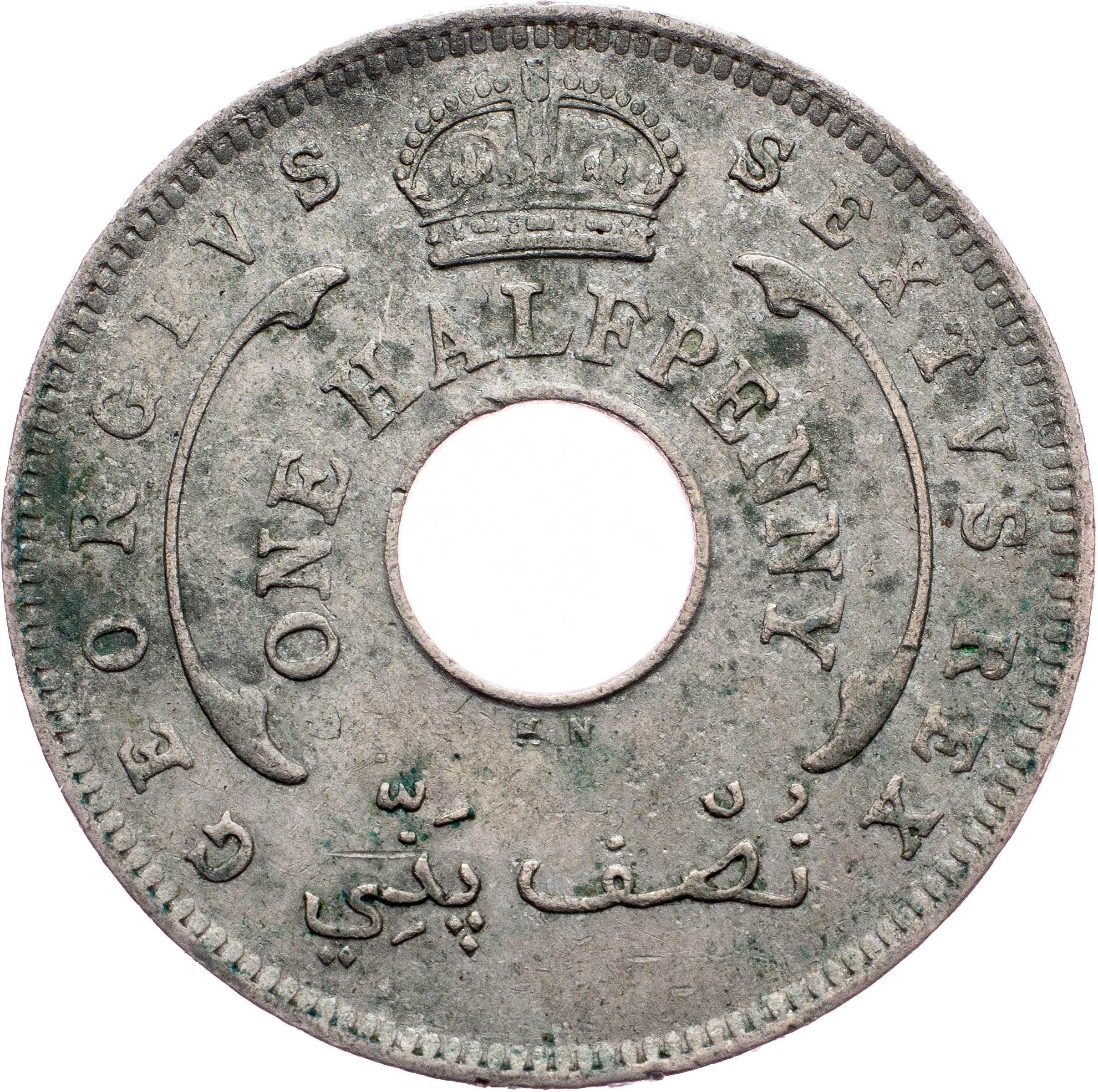 British West Africa, George VI, 1/2 Penny 1949, Birmingham, 5,681 g, Copper-nickel, KM# 27, toned; aVF