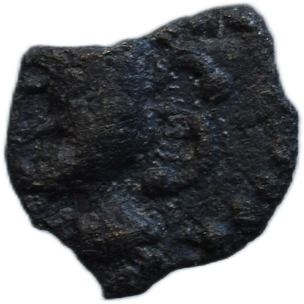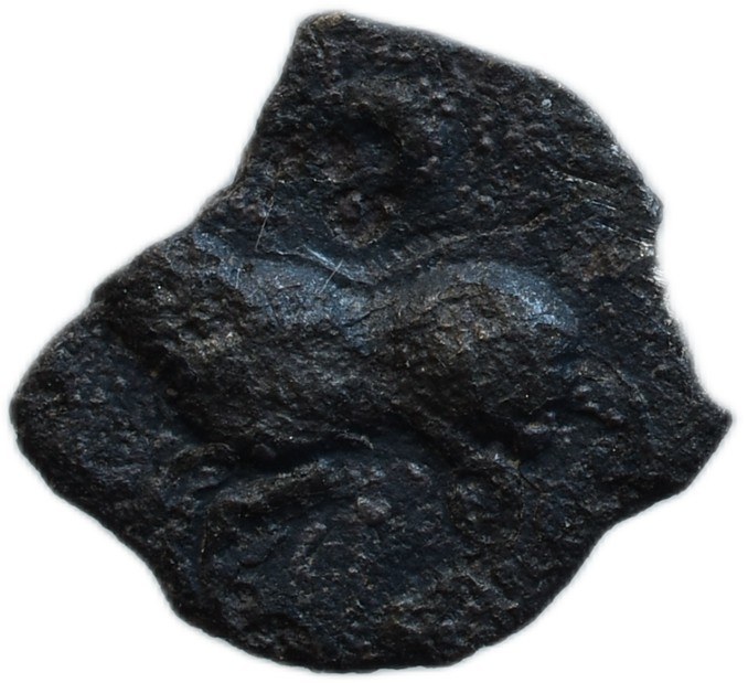 Stylizovaná užší hlava vlevo s esovitým účesem a uchem / Kůň zleva, 0.163g, olámaný