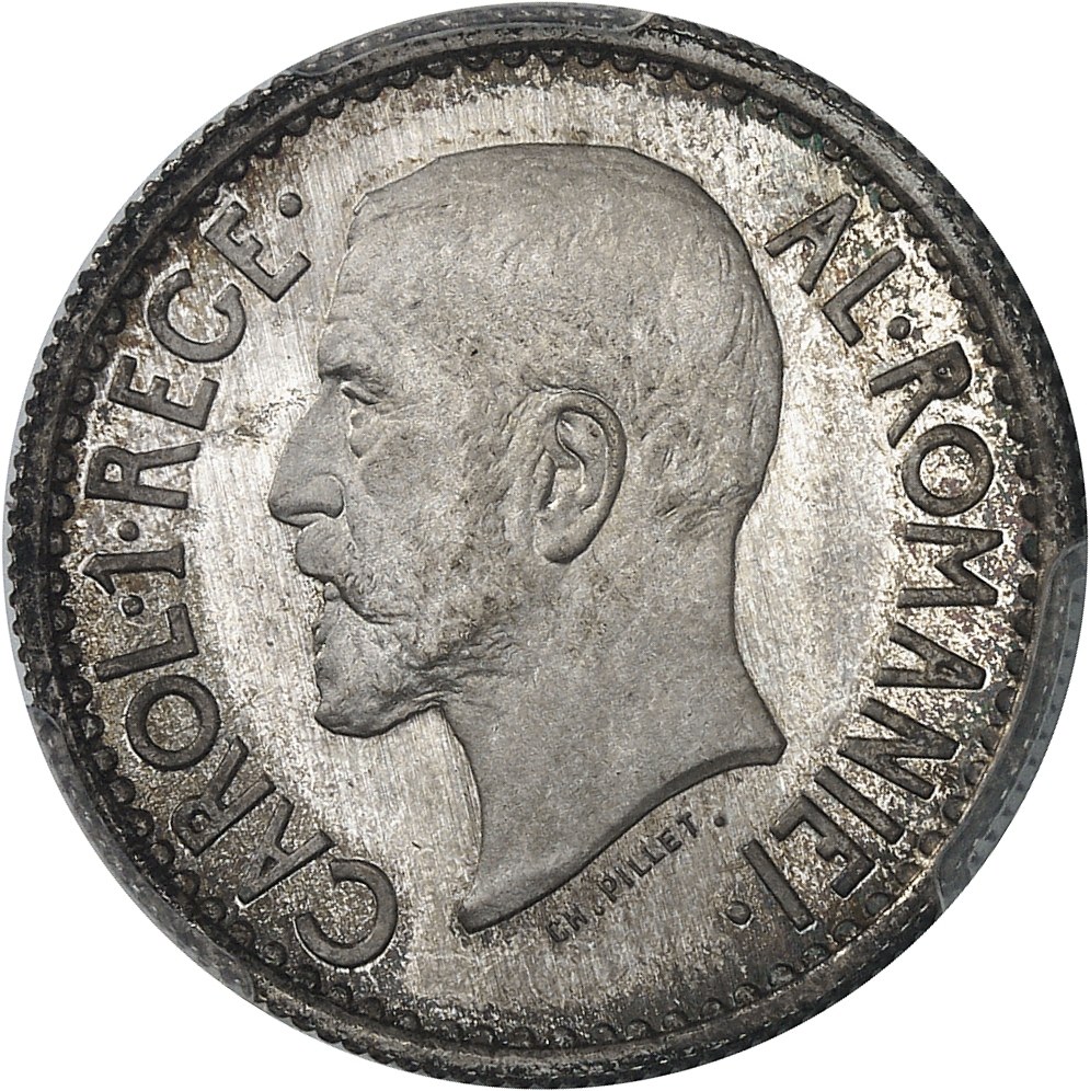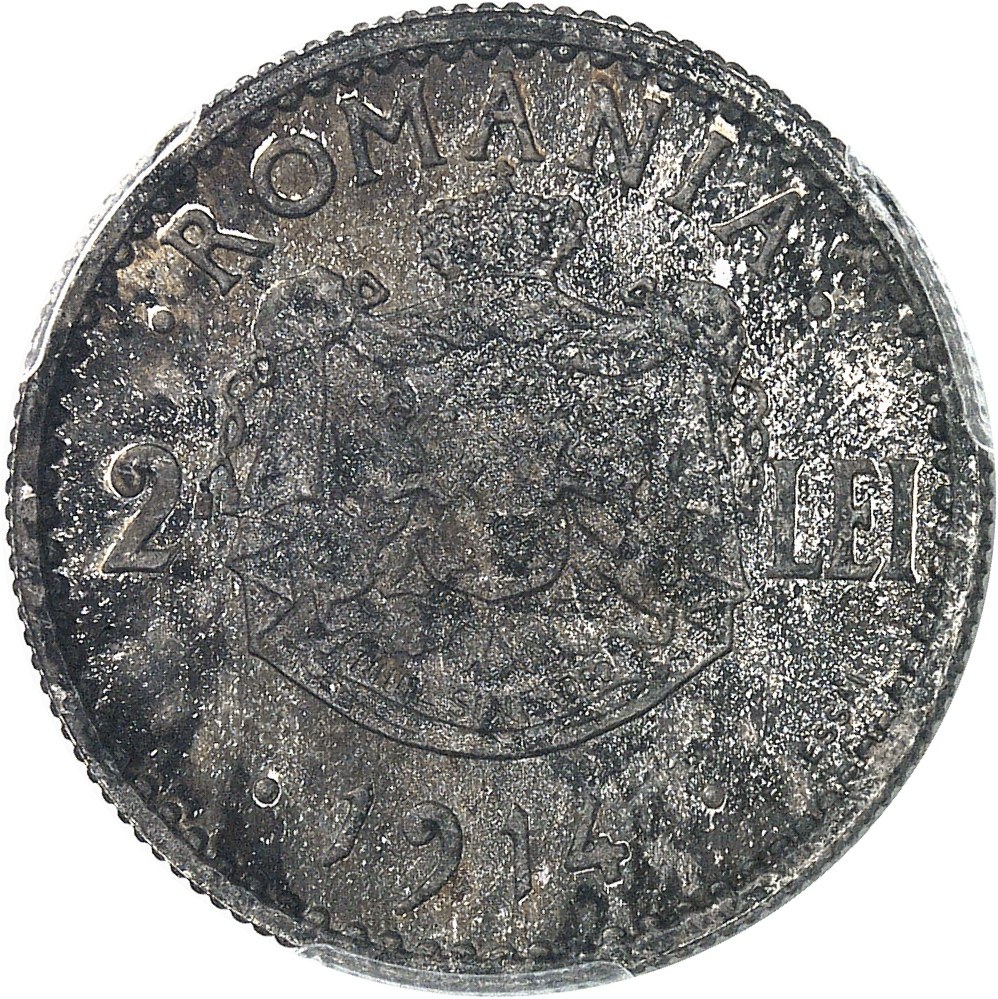 Charles Ier de Roumanie (1866-1914). Essai de 2 lei par Ch. Pillet, Frappe spéciale (SP) 1914, Paris. PCGS SP65 (49097112).