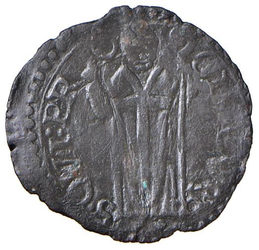 Correggio - Anonime dei Conti Gerolamo, Gilberto, Camillo e Fabrizio (1569-1580) Quattrino - D/ COMI CORR, stemma R/ S QVIR PR CIV CORR, San Quirino stante con pastorale - MIR 126 Mi 0,43 g RR