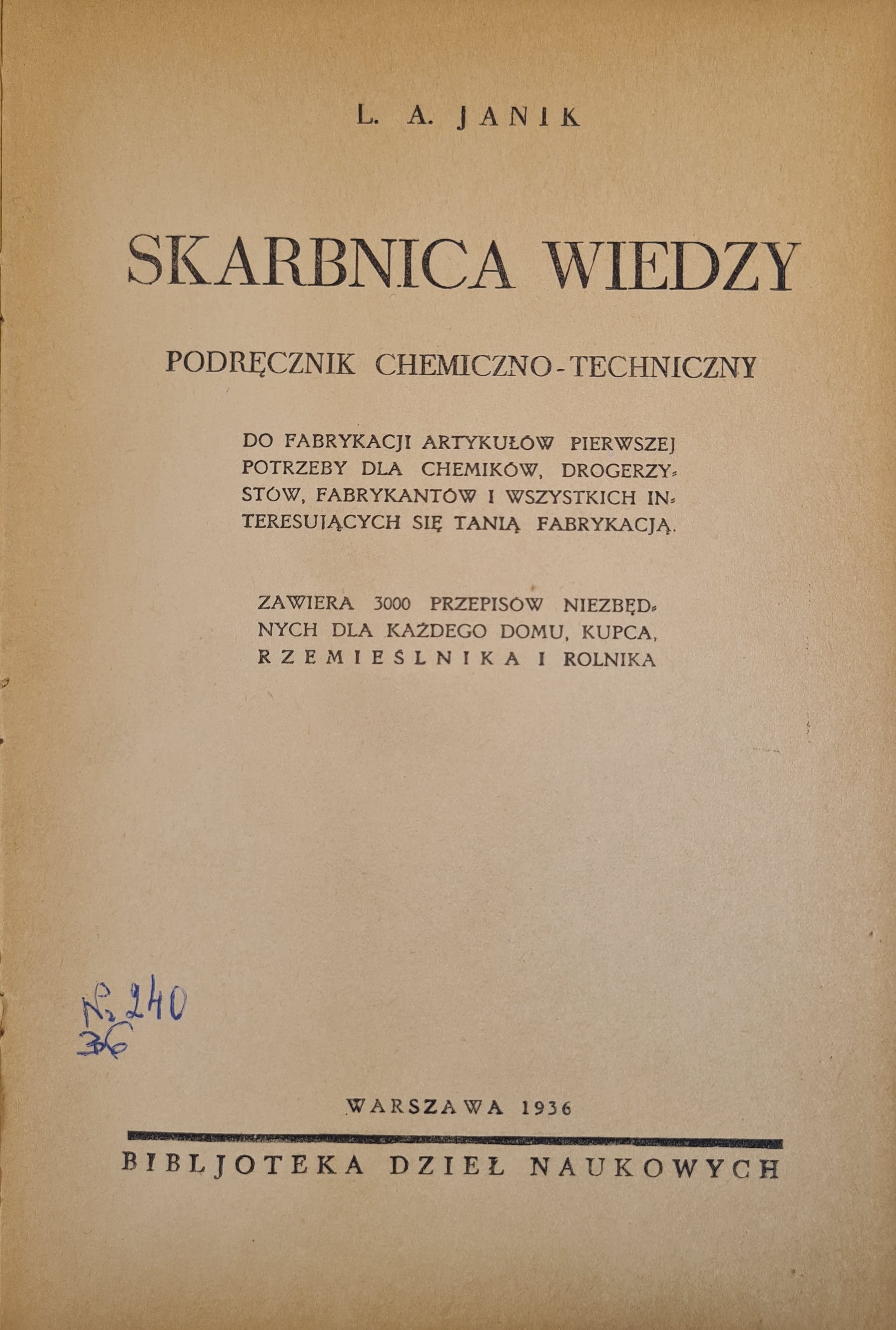 JANIK L. A. - SKARBNICA WIEDZY. Podręcznik chemiczno-techniczny