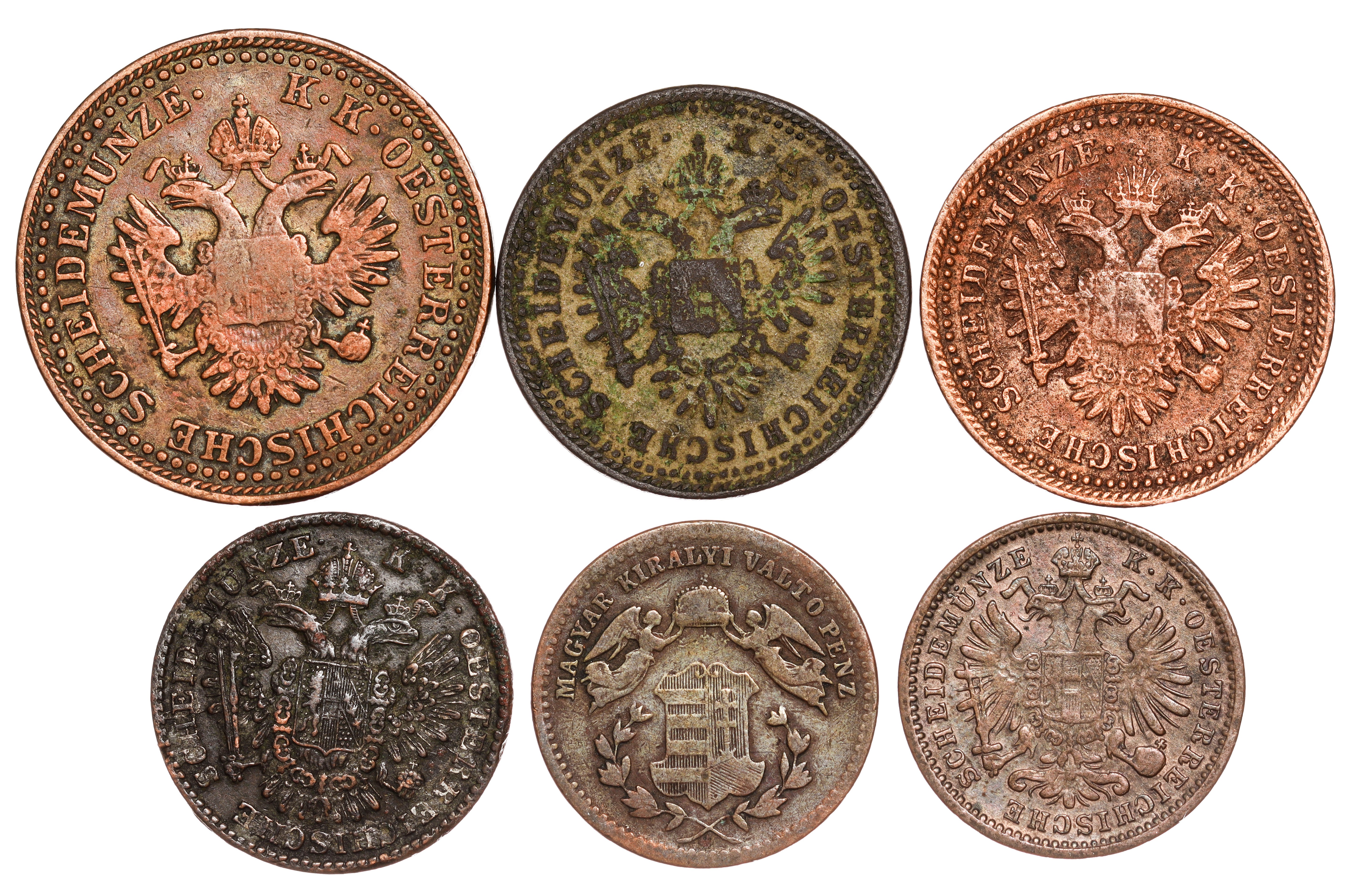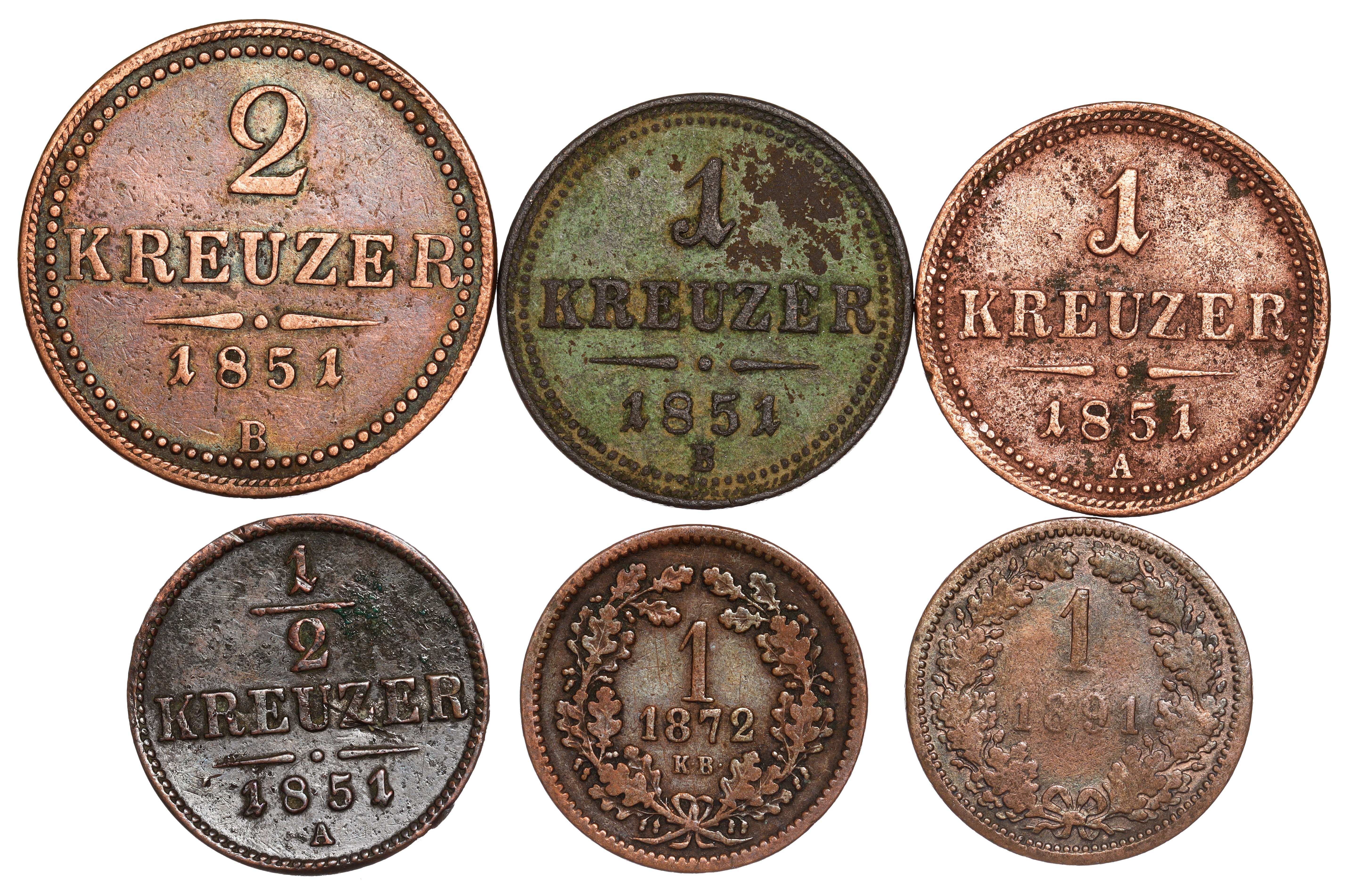 Franz Joseph I. (1848-1916) 2, 1, 1/2 Kreuzer - LOT – 6 pcs