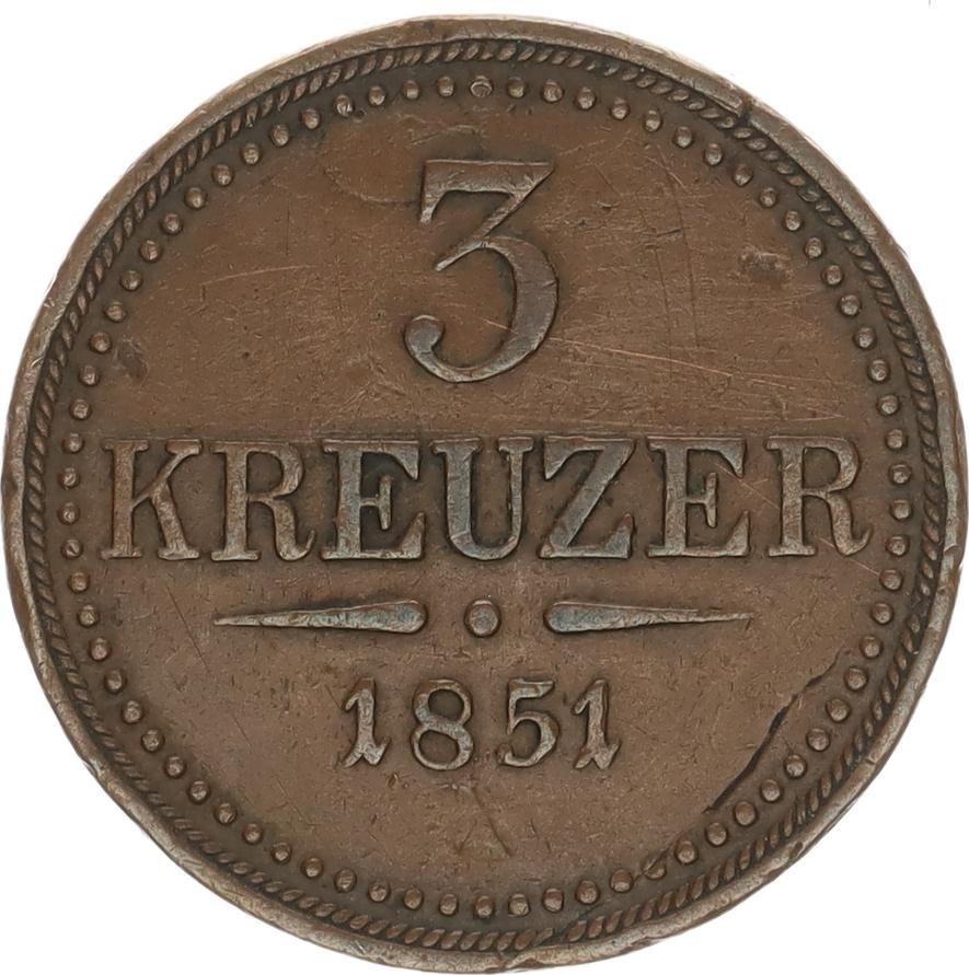 3 kr. 1851 - chybí značka (A?), vada stř., dr. hr.