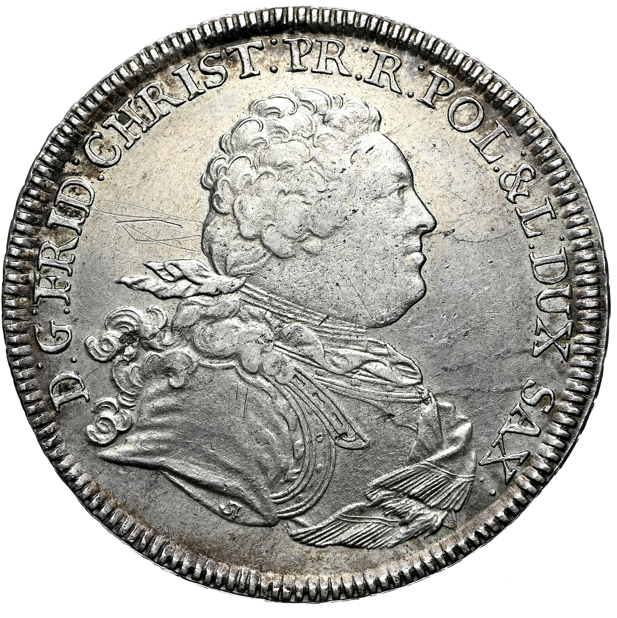 Rzadszy i wyżej wyceniany talar z mennicy drezdeńskiej. Litery St pod popiersiem (rytownik Johan Friedrich Stieler).