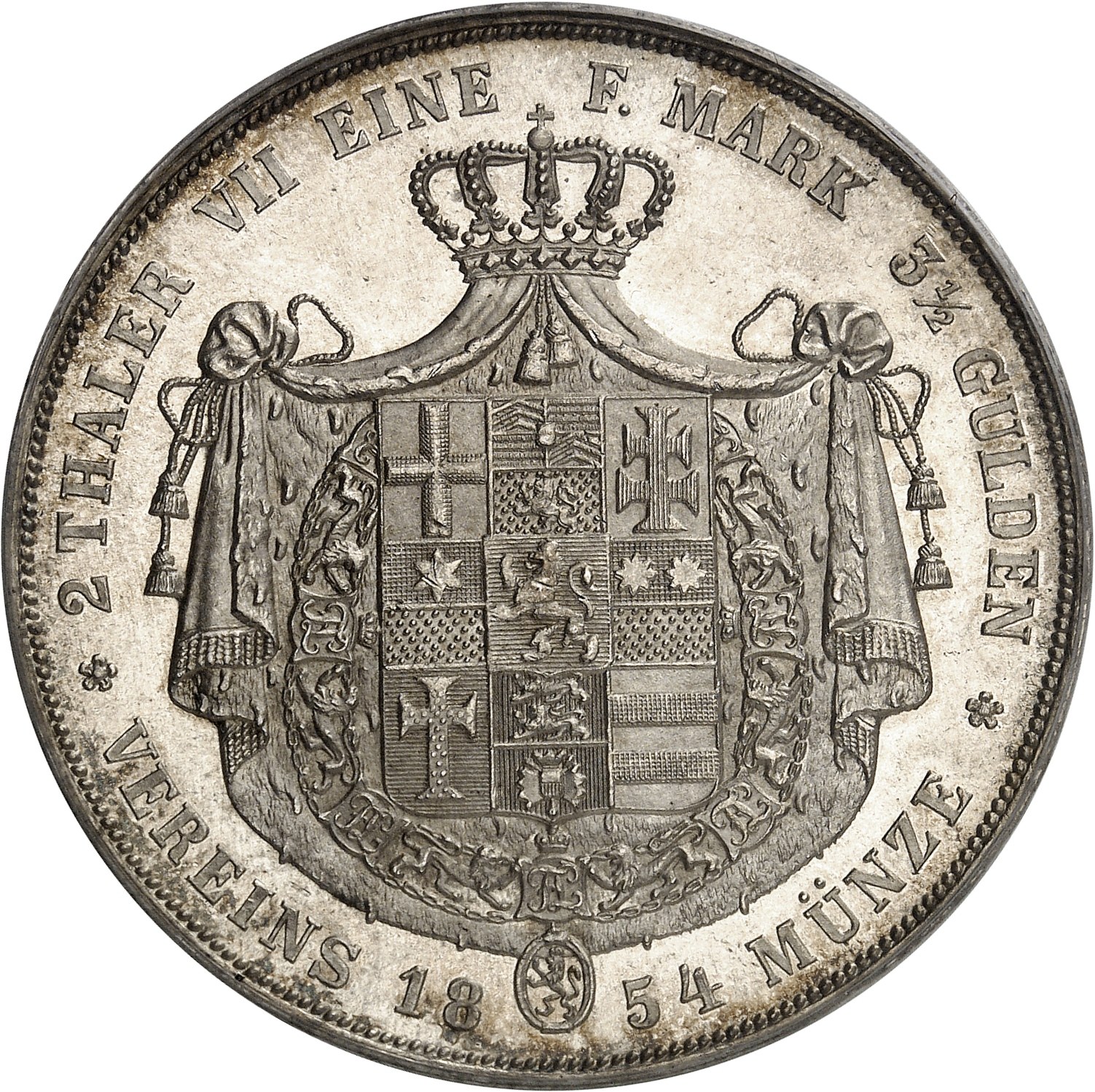 Hesse-Cassel, Frédéric Guillaume Ier (1847-1866). Double thaler (3 1/2 florins) 1854, Cassel. PCGS MS64+ (39807055).