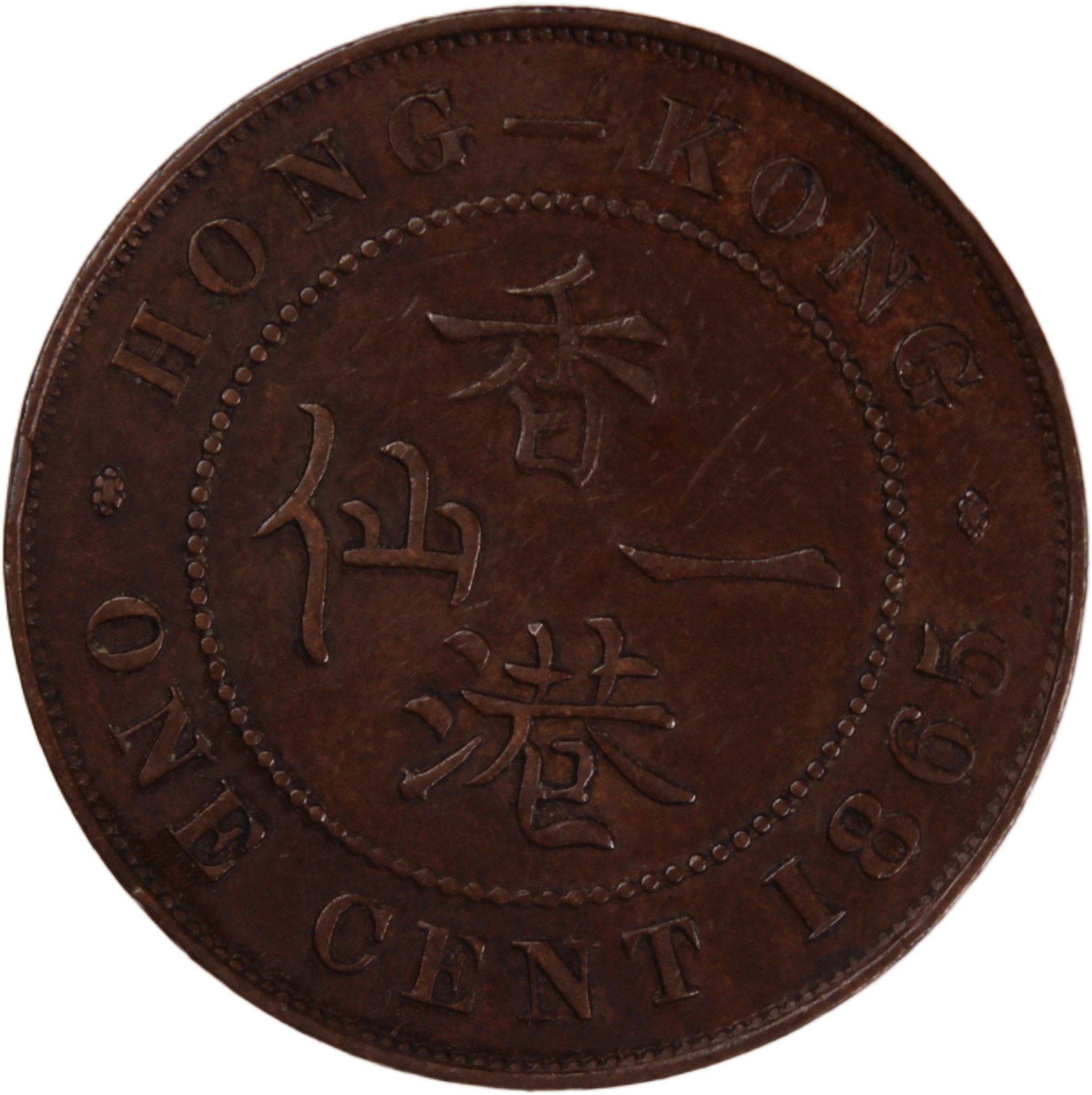 Hong Kong 1 Cent 1865 London Mint Victoria Bronze KM#4.1 (14 pearls in left arch of crown)