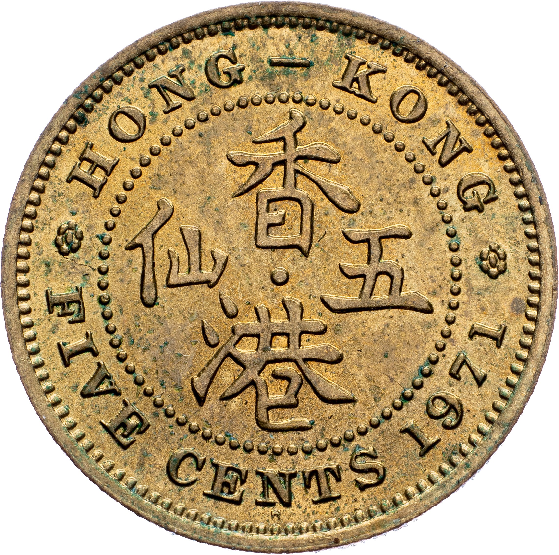 Hong Kong, Elizabeth II, 5 Cents 1971, Birmingham, 2,612 g, Nickel brass, KM# 29.3, toned; UNC