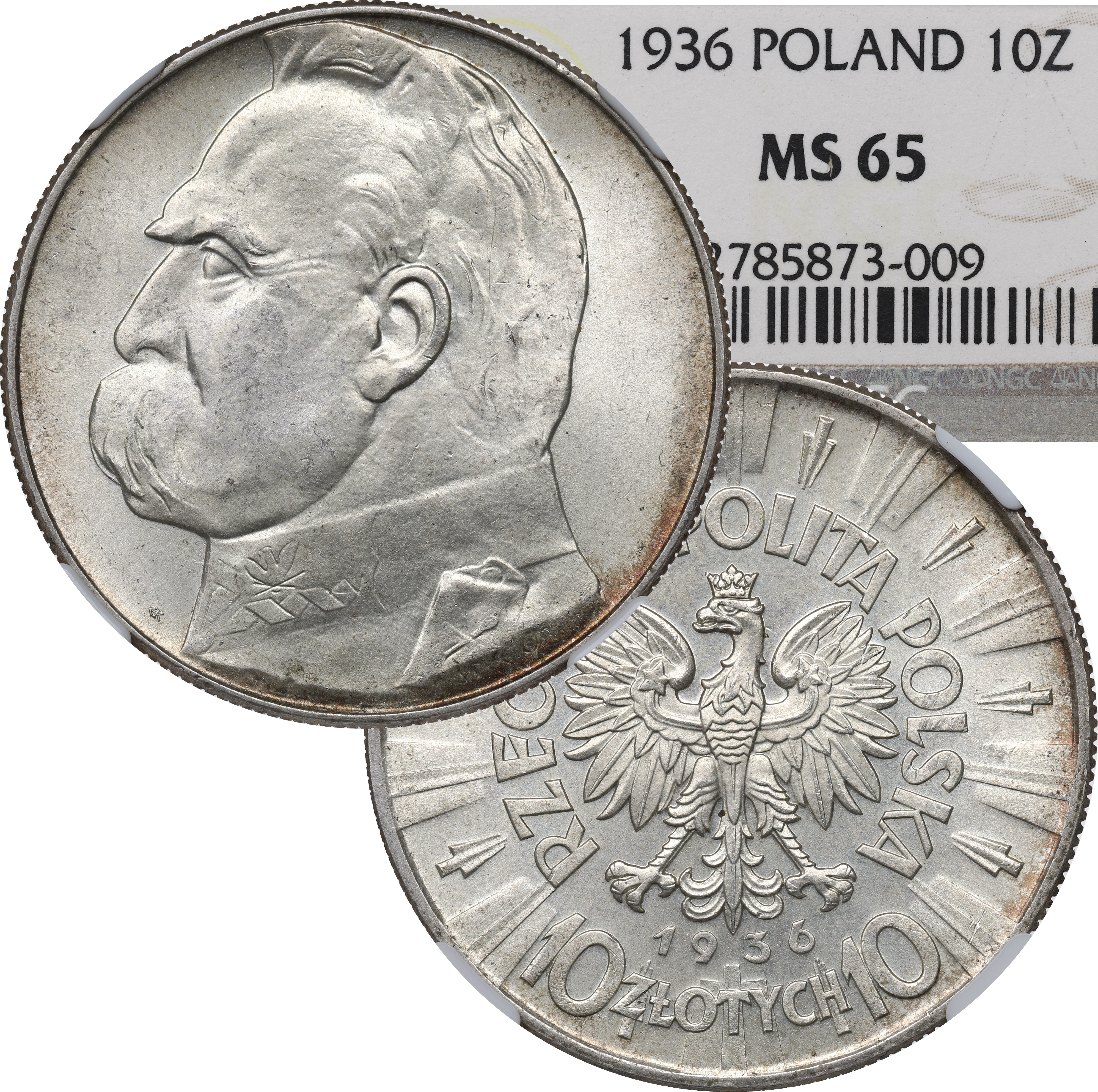 RZECZPOSPOLITA POLSKA 10 ZŁOTYCH 10, pod ogonem orła rok.