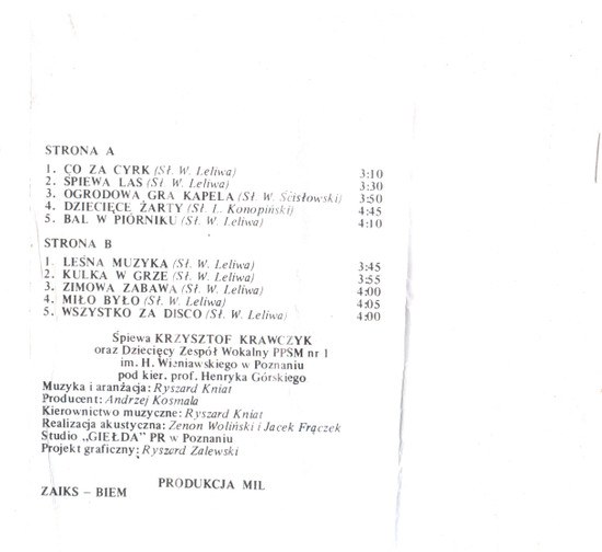 Kaseta magnetofonowa z repertuarem skierowanym do dzieci – pogodna i melodyjna, zachęcająca do wspólnego śpiewania i tańca. Idealna dla najmłodszych słuchaczy.