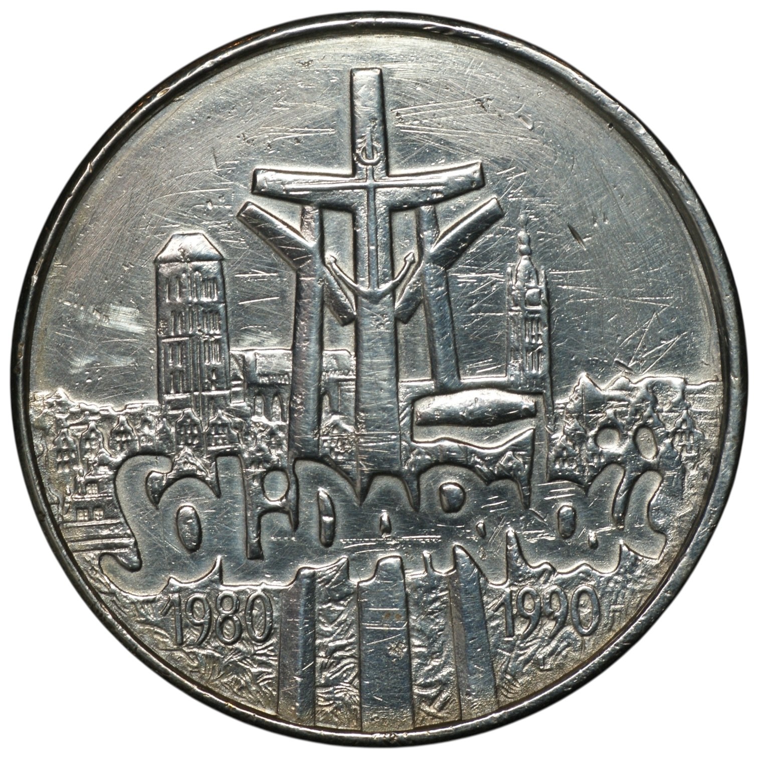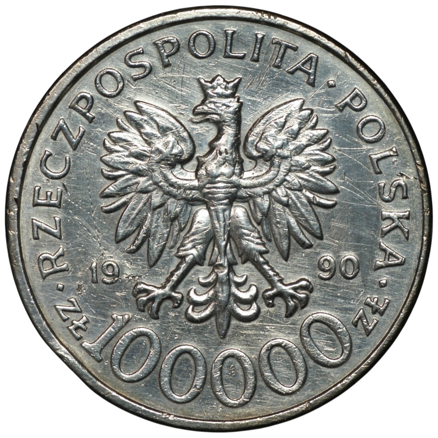 Moneta wyczyszczona, widoczne rysy.