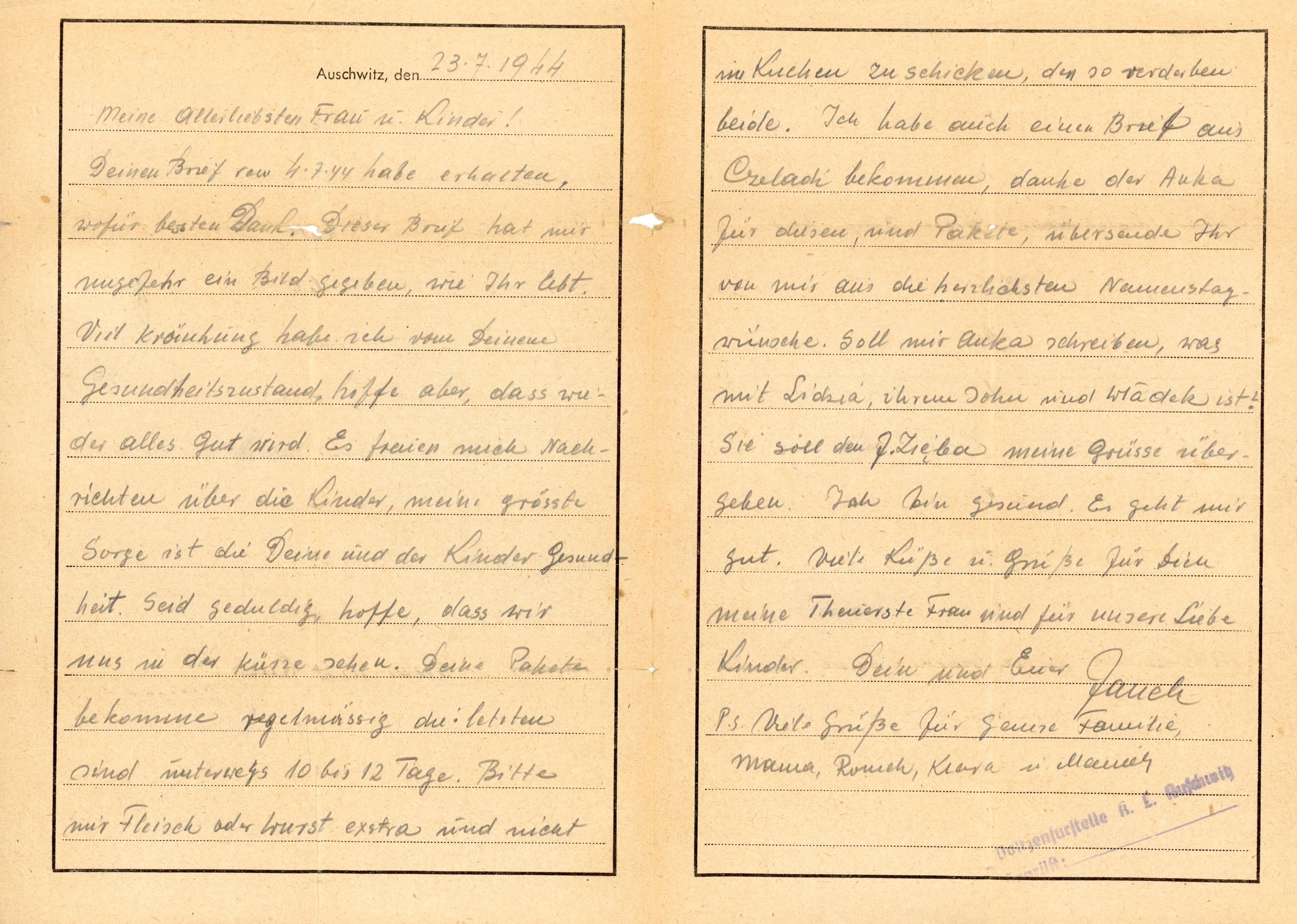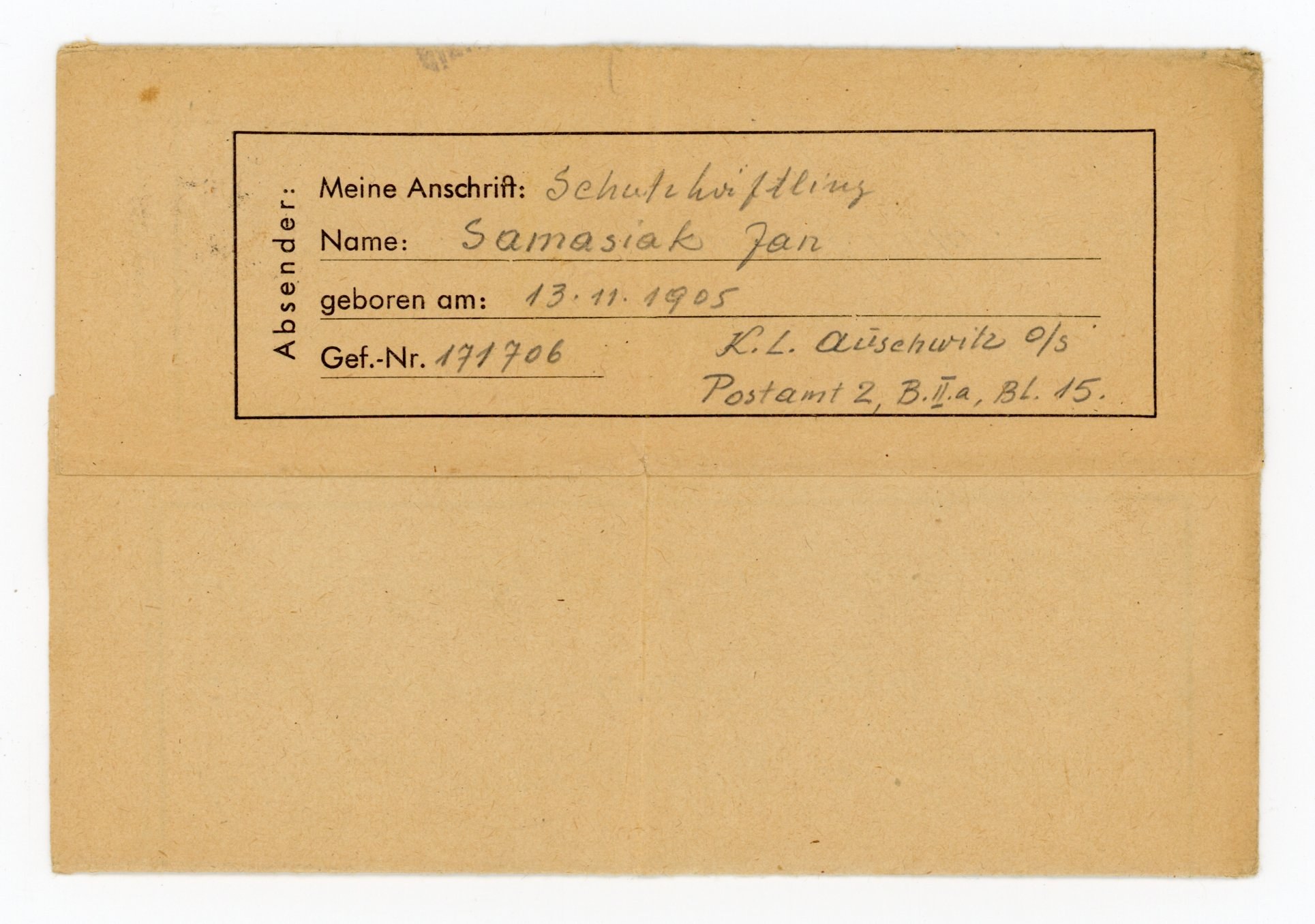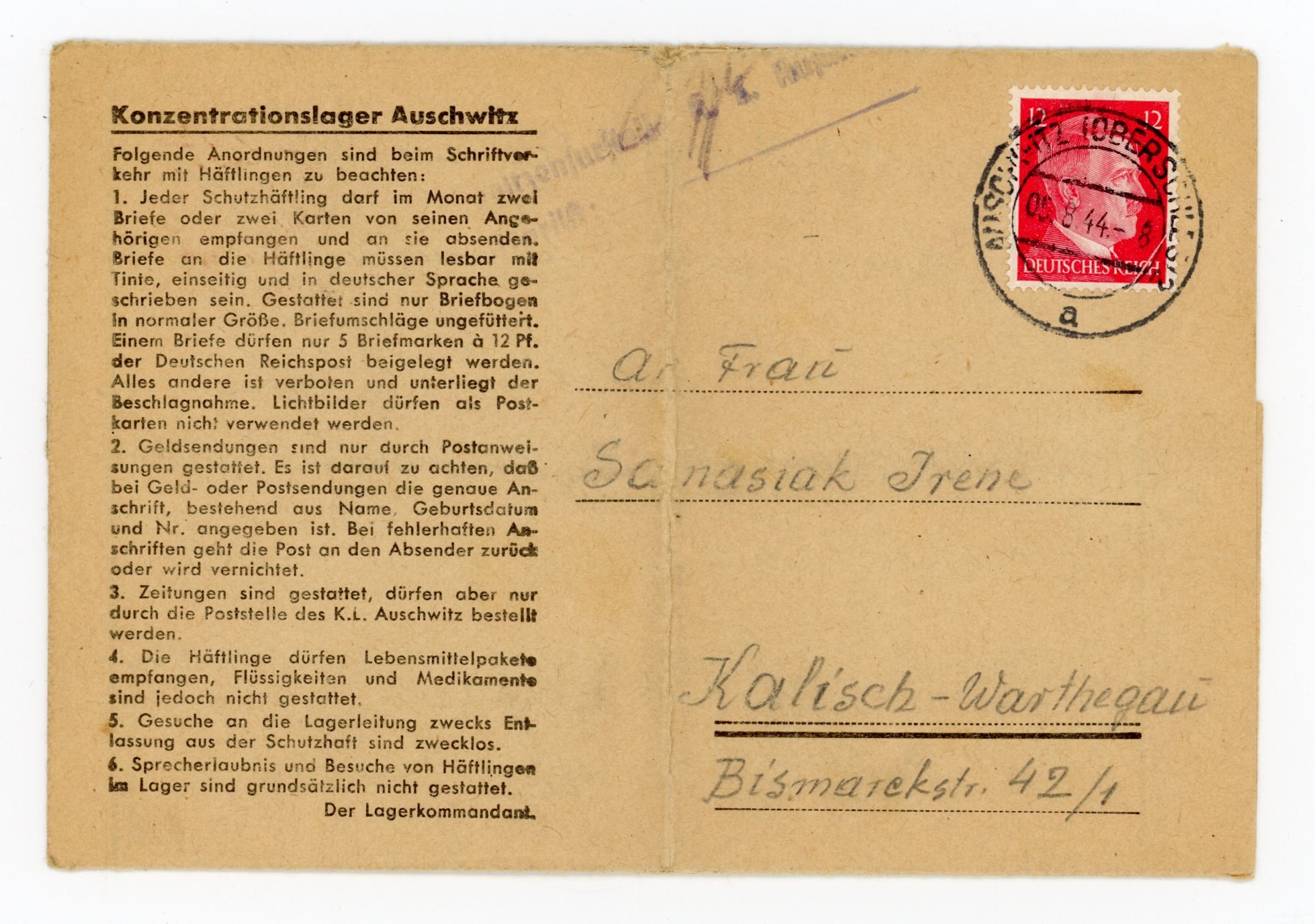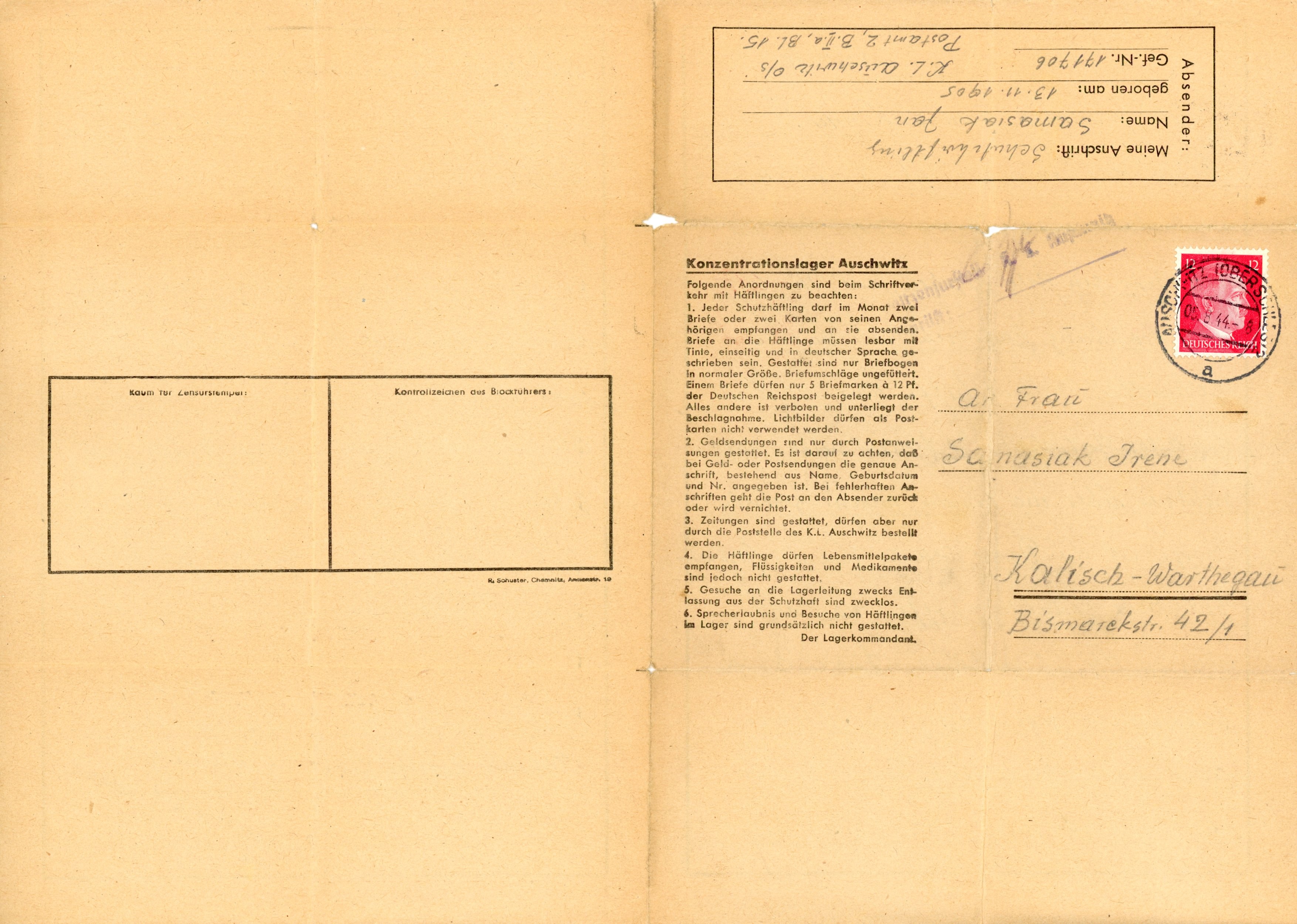 KL Auschwitz - list składany więźnia, 1944 r. Dobry stan zachowania.