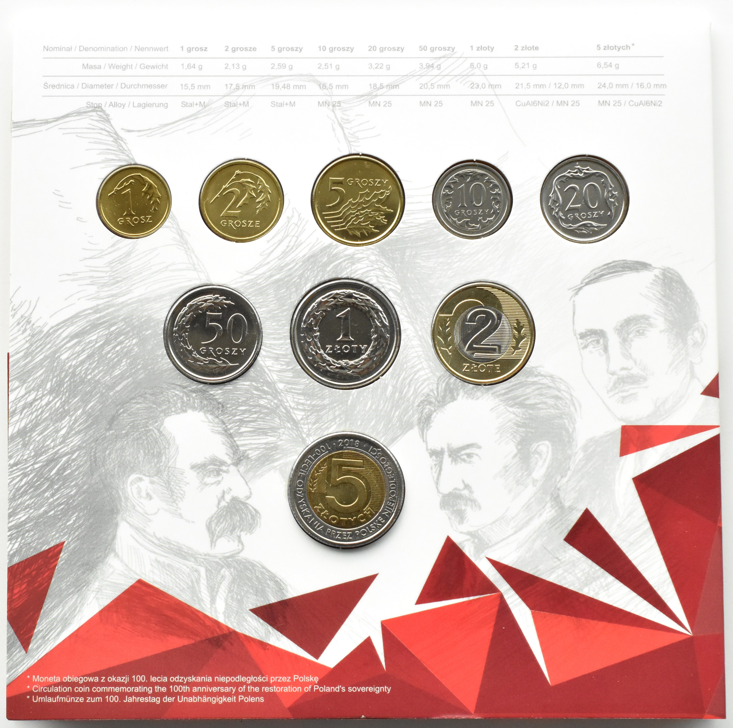 III RP, polskie monety obiegowe, 10 groszy-5 złotych 2018, Warszawa, UNC