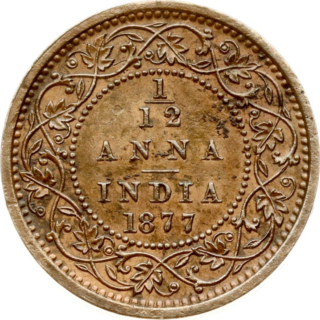British, India. Victoria (1837-1901). 1/12 Anna 1877 (B). Copper 2.14 g. KM 483.