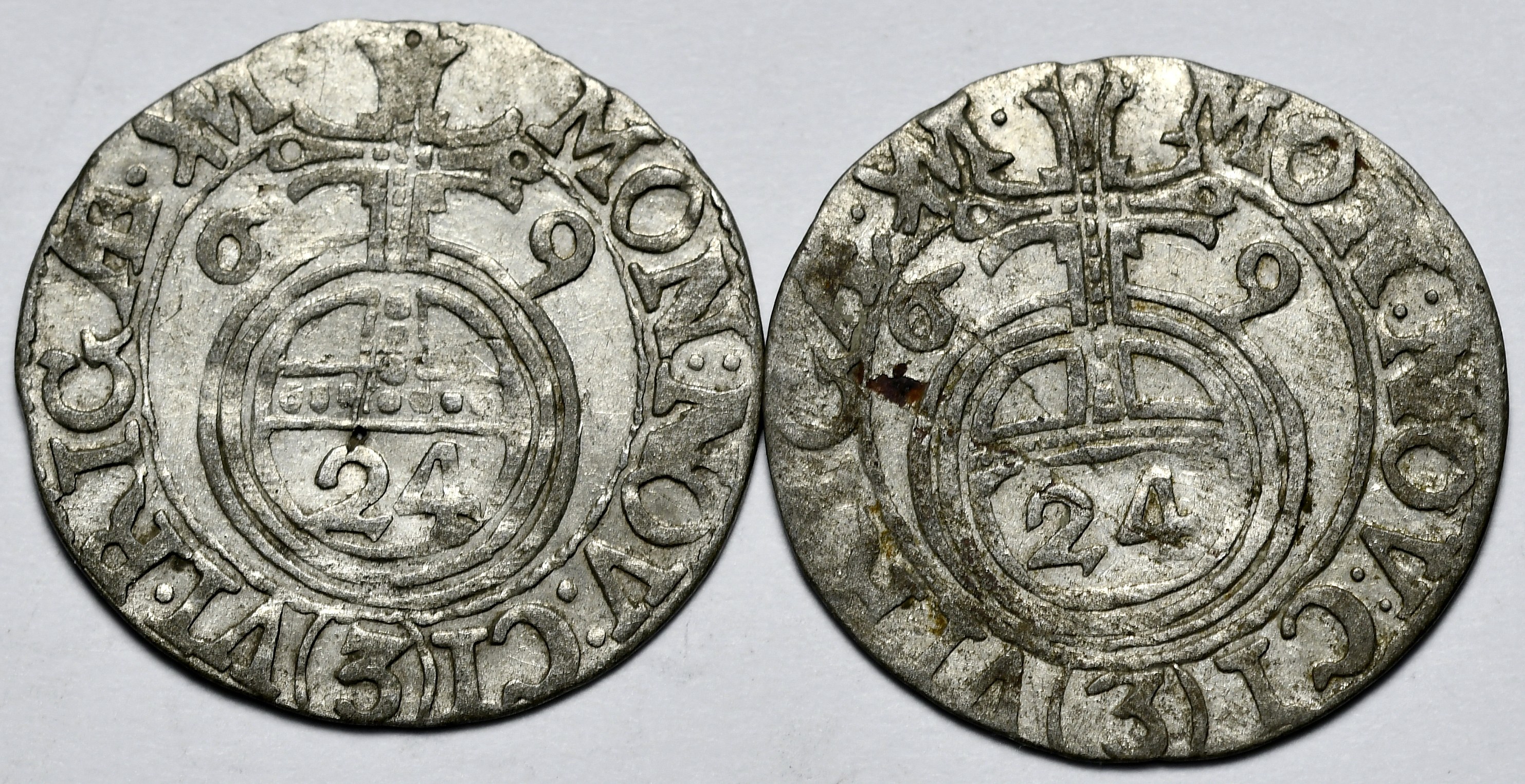 Dość ładne i rzadkie półtoraki inflanckie wybijane przez króla Karola XI.
