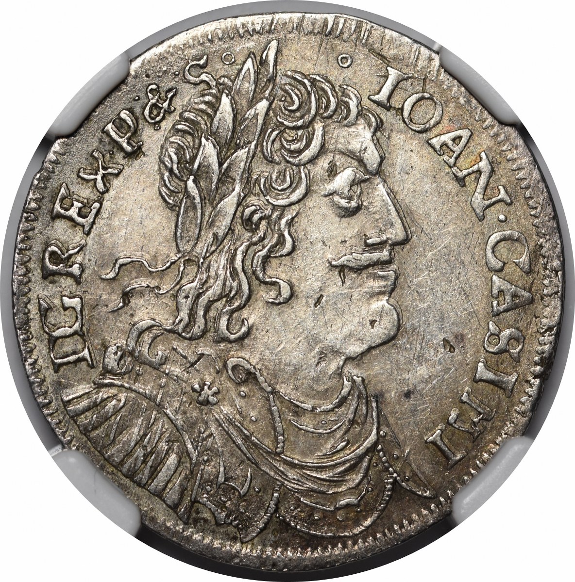 Odmiana napisowa z tytulaturą króla IOAN CASIMI … w otoku na awersie oraz …