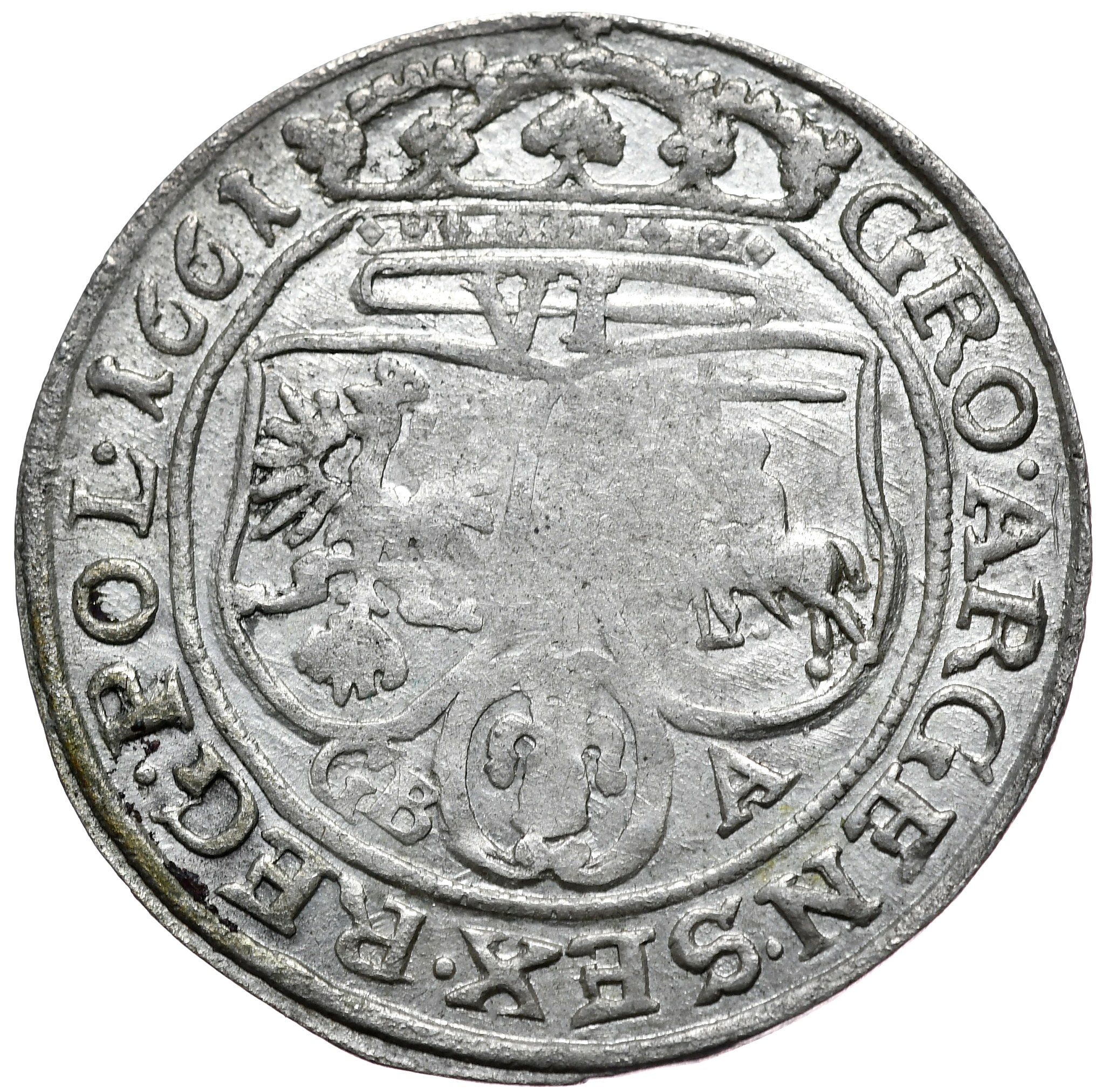 Rzadki szóstak z mennicy lwowskiej. Ładniejszy, połyskowy rewers, awers niedobity z porowatą powierzchnią i wadami blachy