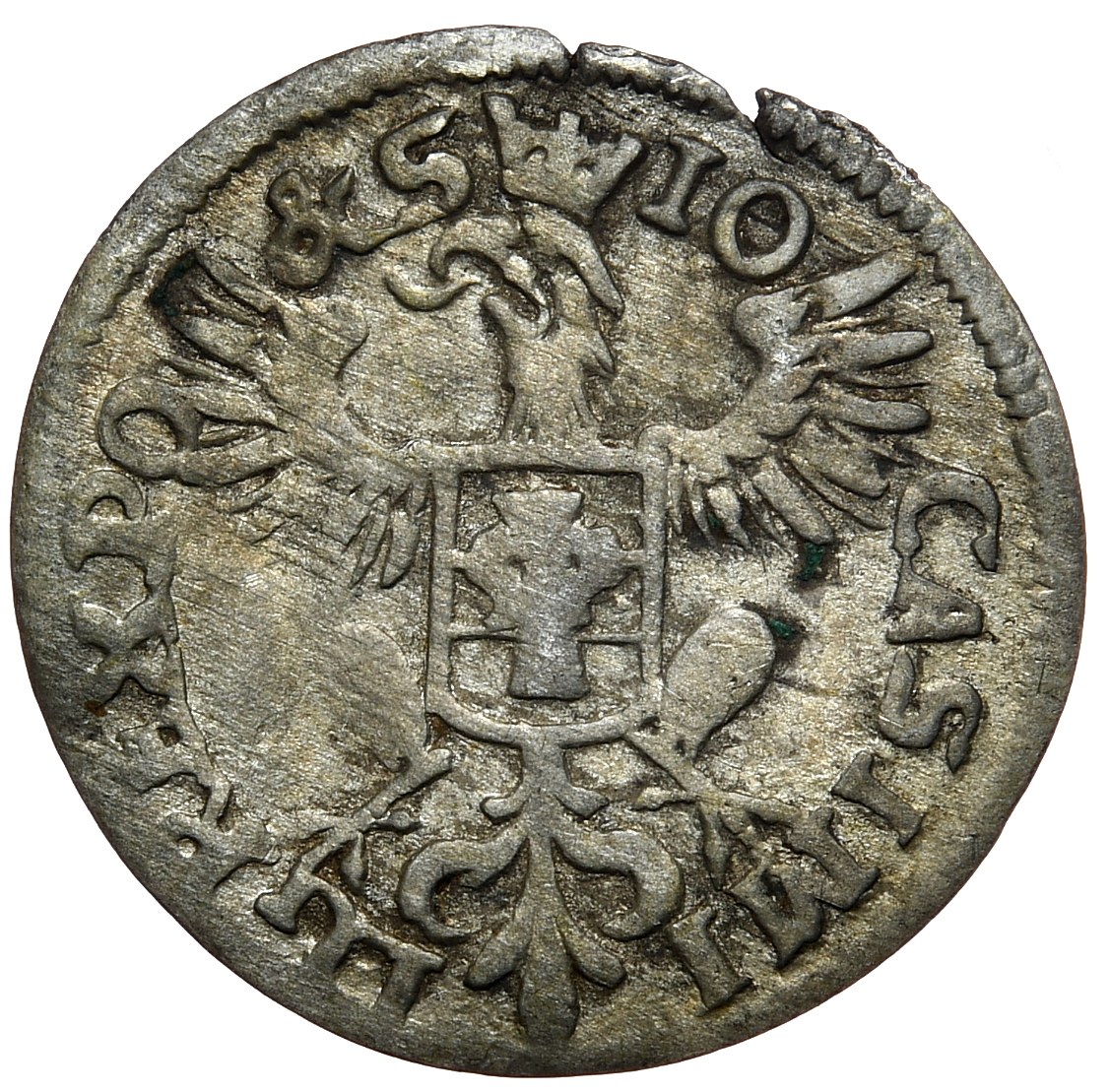 Pierwszy rocznik dwugroszy wschowskich. Rzadki w każdym stanie zachowania. Oferowana sztuka posiada typowe wady krążka i dobrą