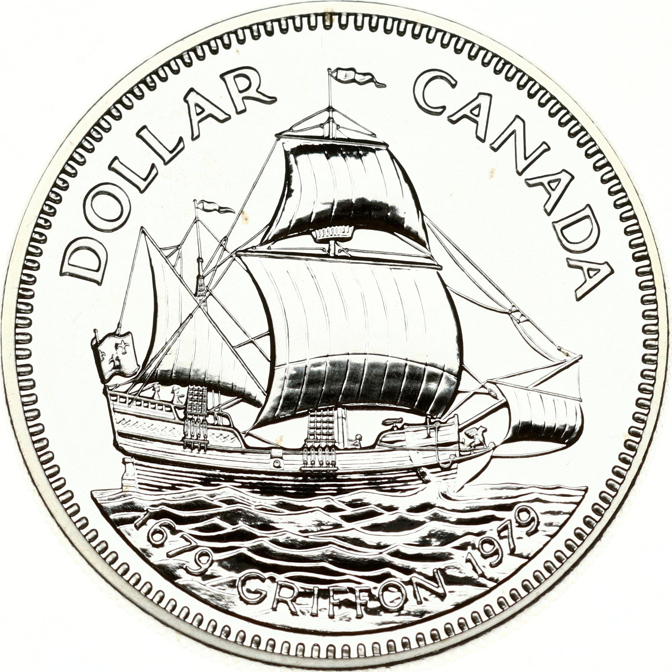 Canada 1 Dollar 1979 Griffon. Elizabeth II (1952-2022). 300th Anniversary of the Griffon. Silver .500, 23.32 g. KM-124. With Box