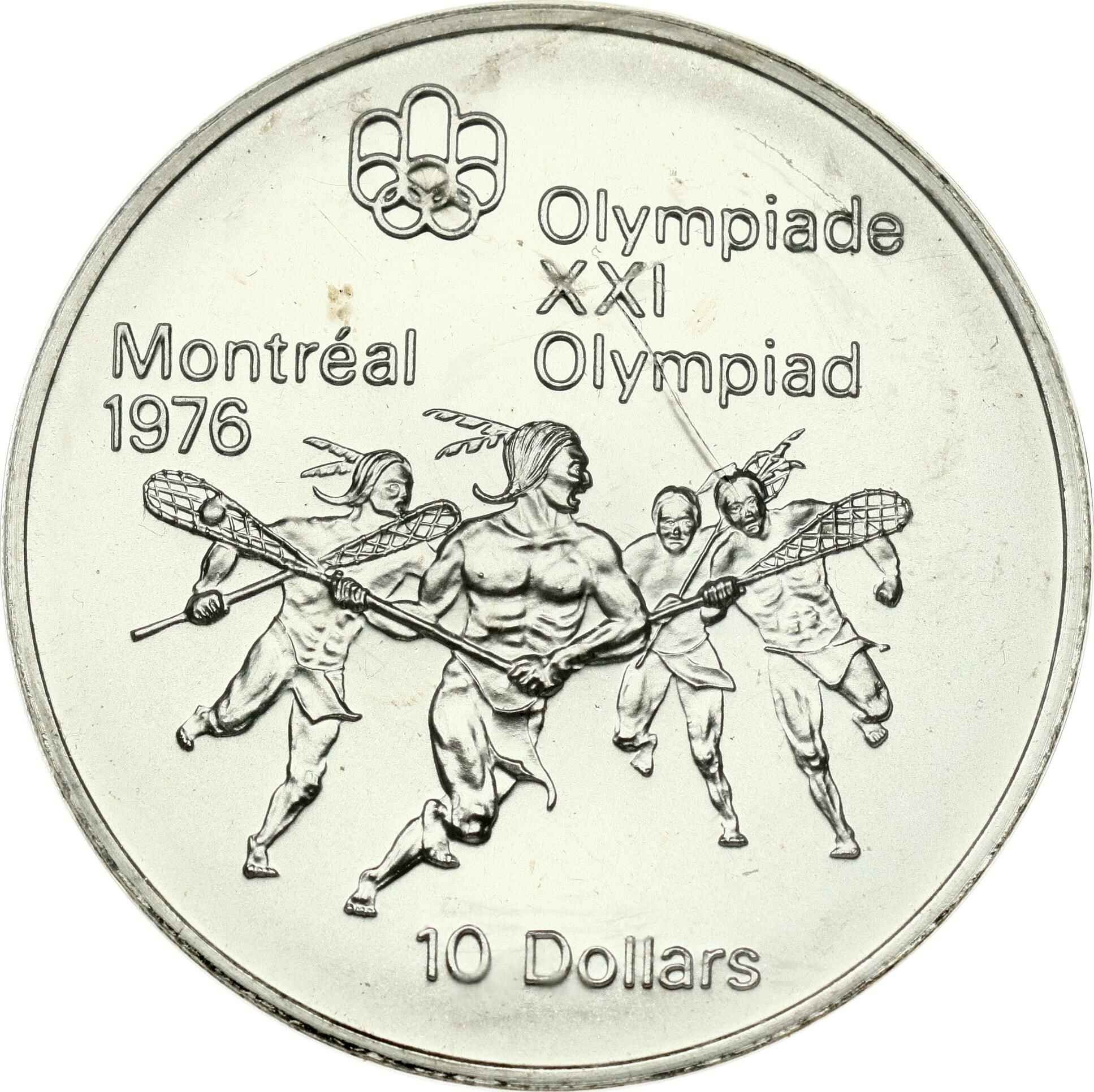 Canada 10 Dollars 1974 Lacrosse. Elizabeth II (1952-2022). 1976 Olympics Montreal. Silver .925, 48.6 g. KM-96