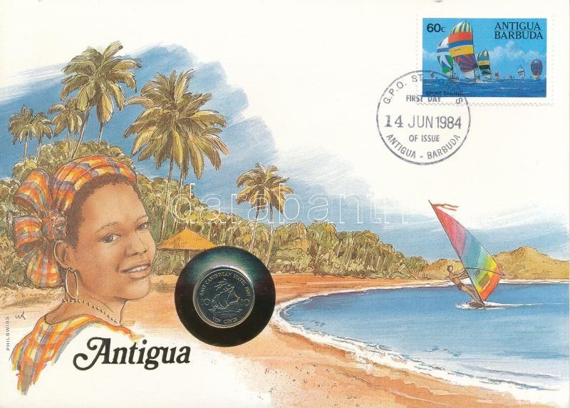 Kelet-Karibi Államok / Antigua 1981. 10c felbélyegzett borítékban, bélyegzéssel, német nyelvű leírással T:UNC patina East Caribbean States / Antigua 1981. 10 Cents in envelope with stamp cancellation and prospectus in German C:UNC patina