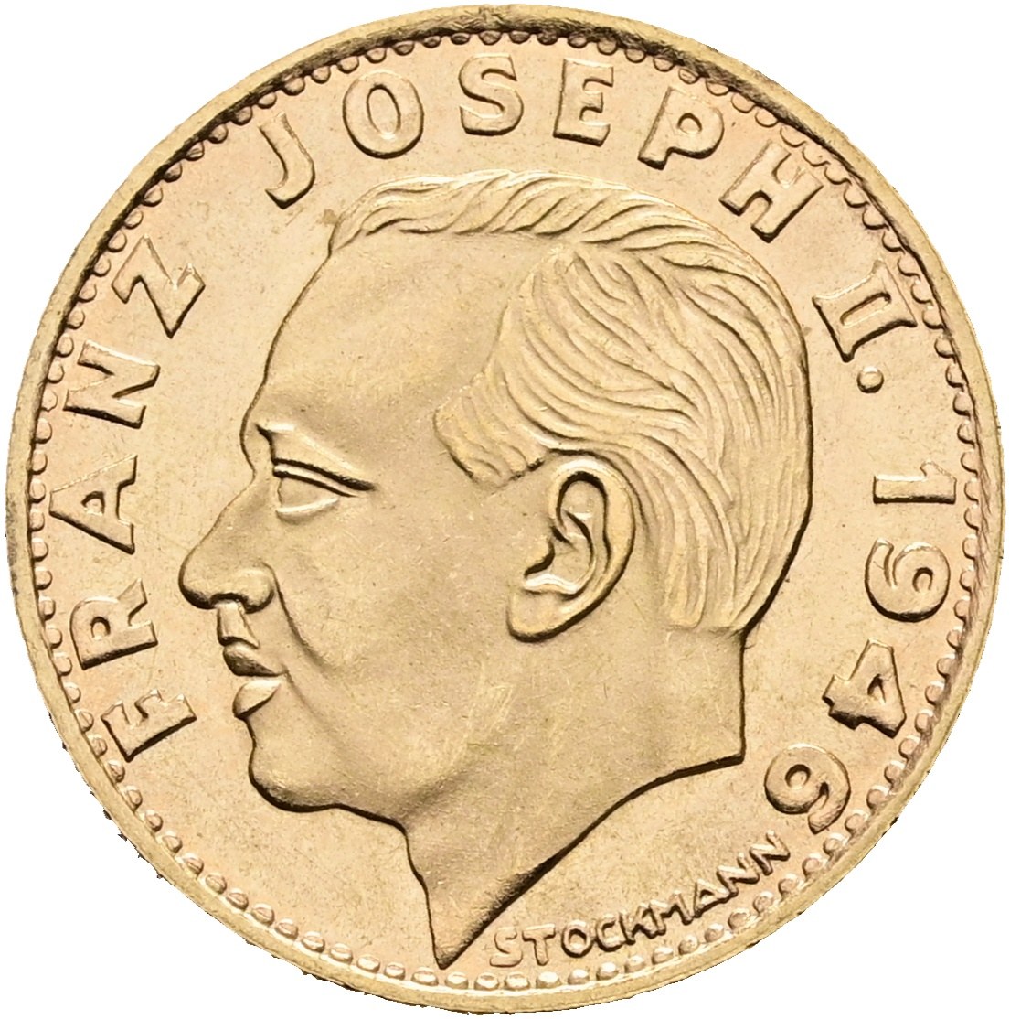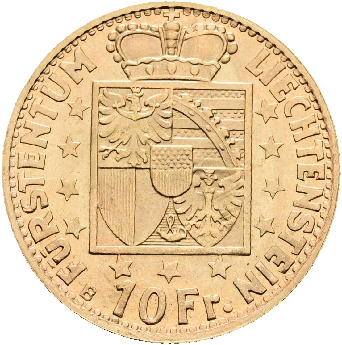 Goldmünze 10 Franken 1946. Fürstentum Liechtenstein. Geprägt in einer Auflage von lediglich 10'000 Exemplaren / Struck in a mintage of only 10,000 pieces.