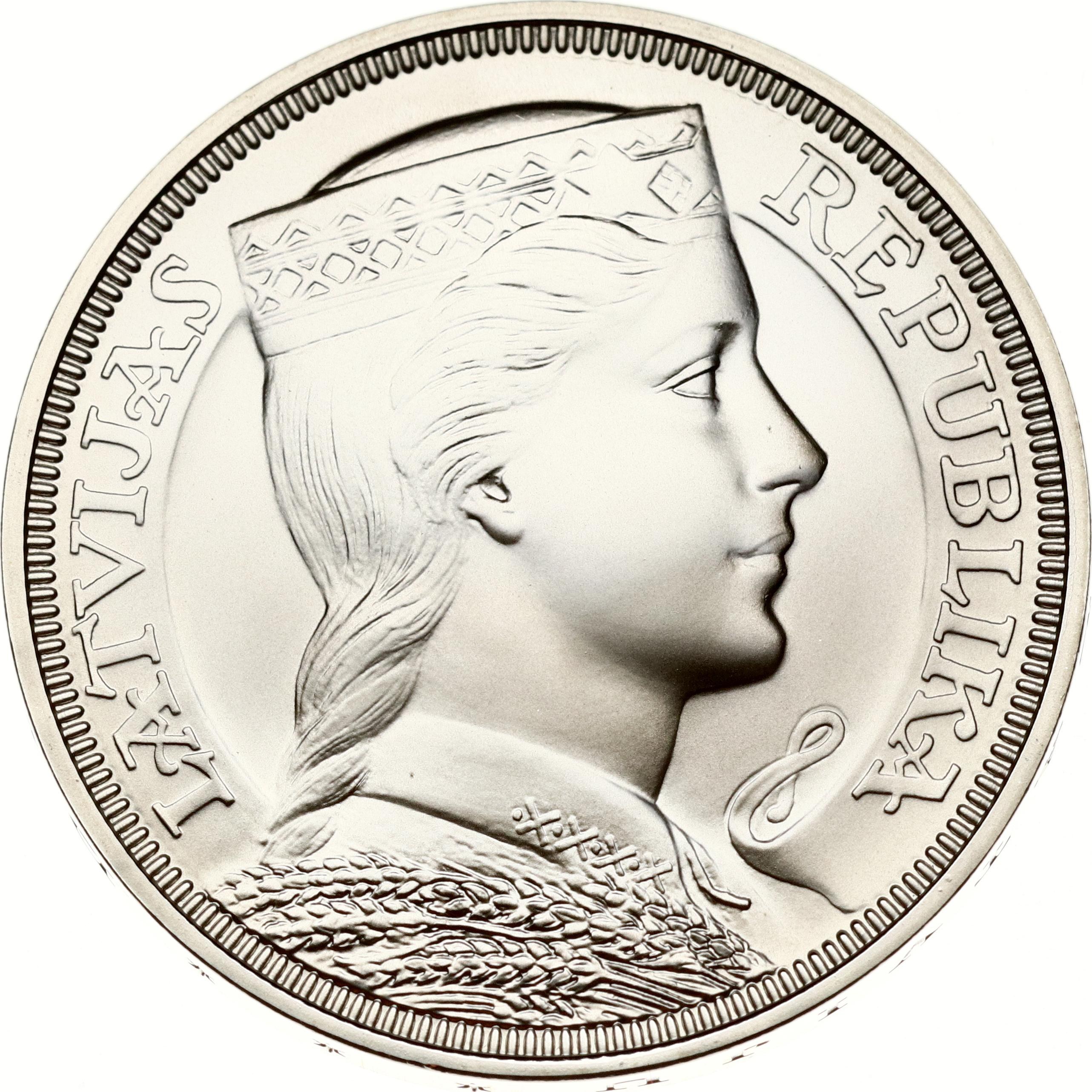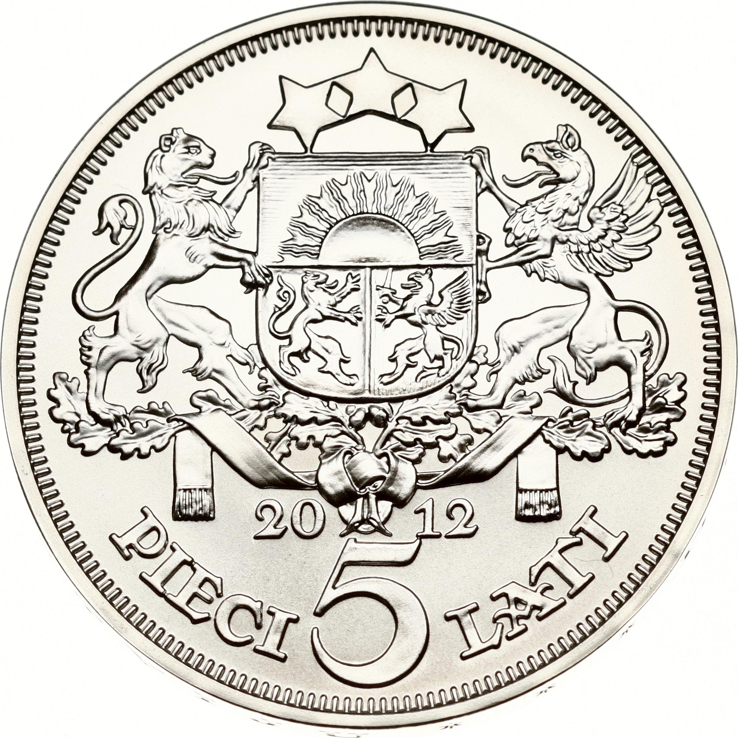 Latvia. 5 Lati 2012, 90th Anniversary of the Bank of Latvia. Silver .925, 24.83 g. KM 130. In box with certificate of Authenticity.