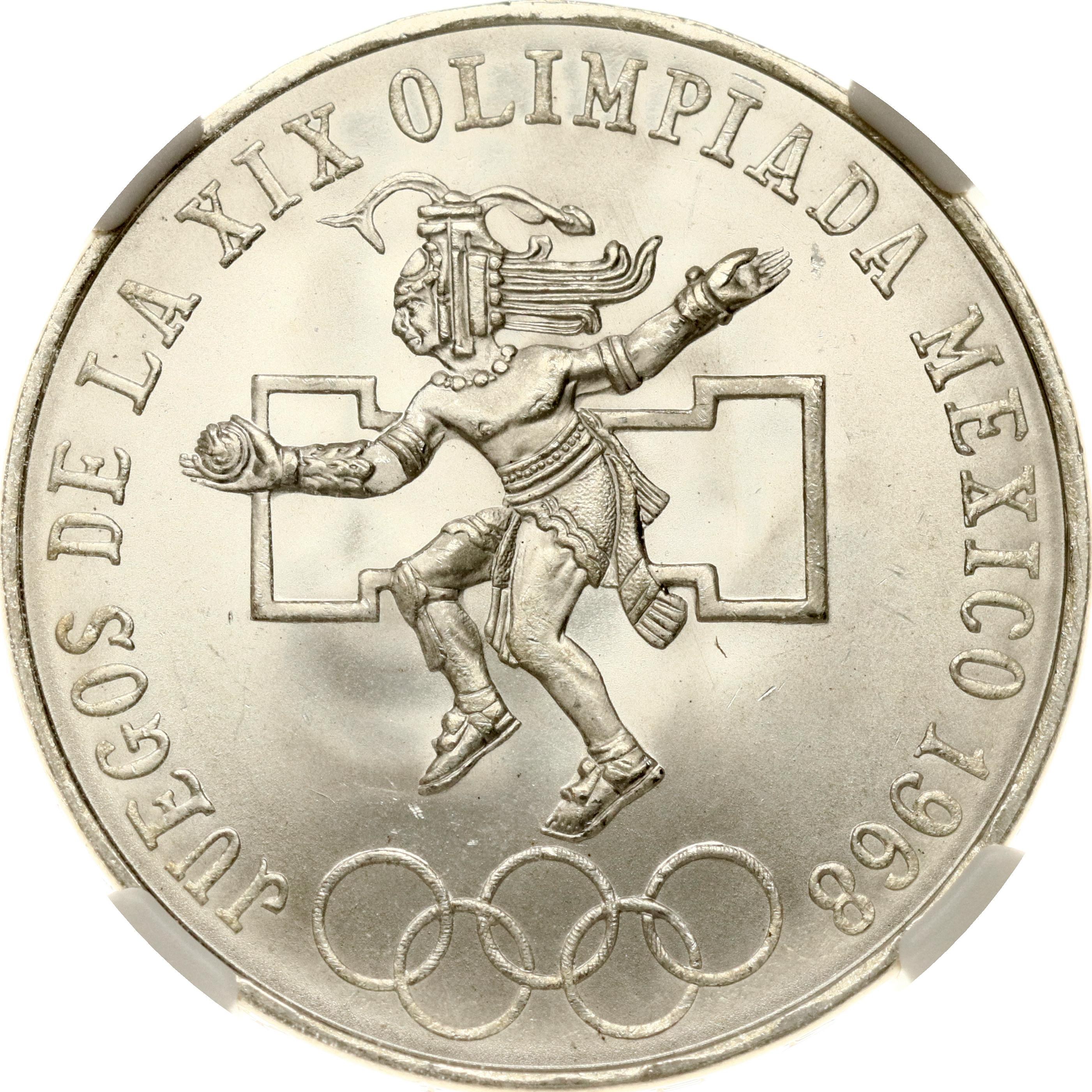 Mexico. 25 Pesos 1968 Mo, Olympic Games. 19th Summer Olympics - Mexico 1968. Silver. KM 479. NGC MS 65+.