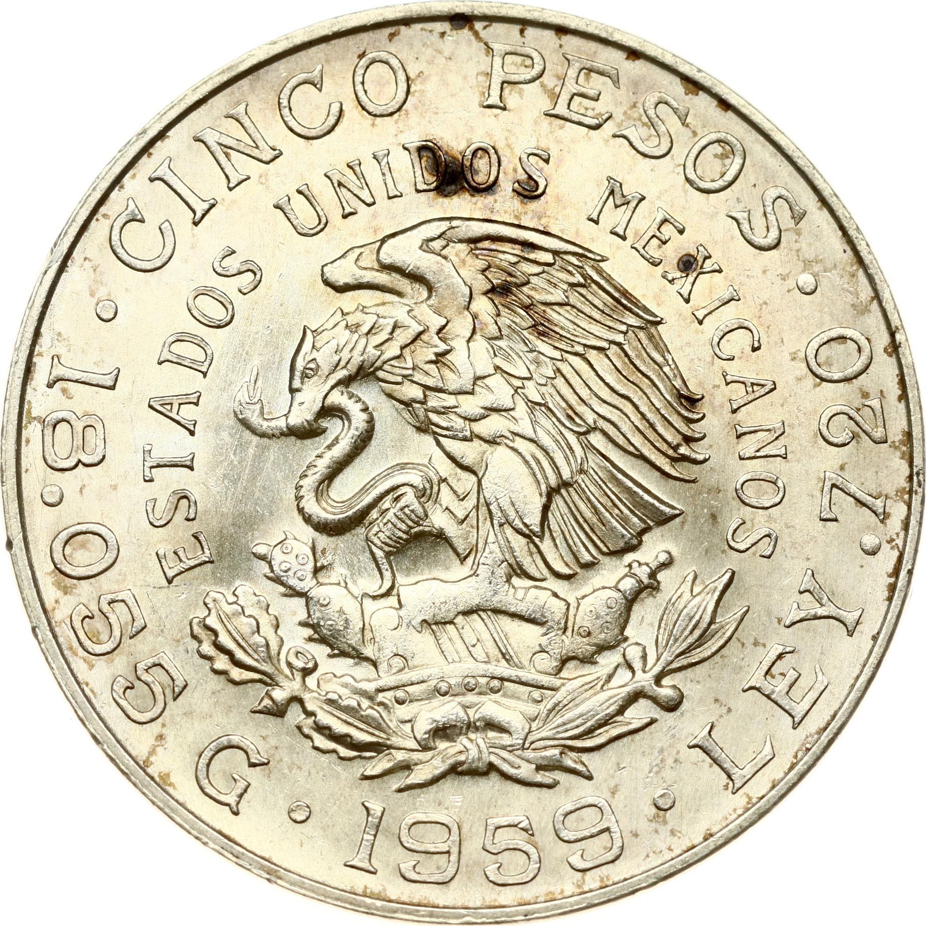 Mexico 5 Pesos 1959 Mo Centennial of Carranza's Birth