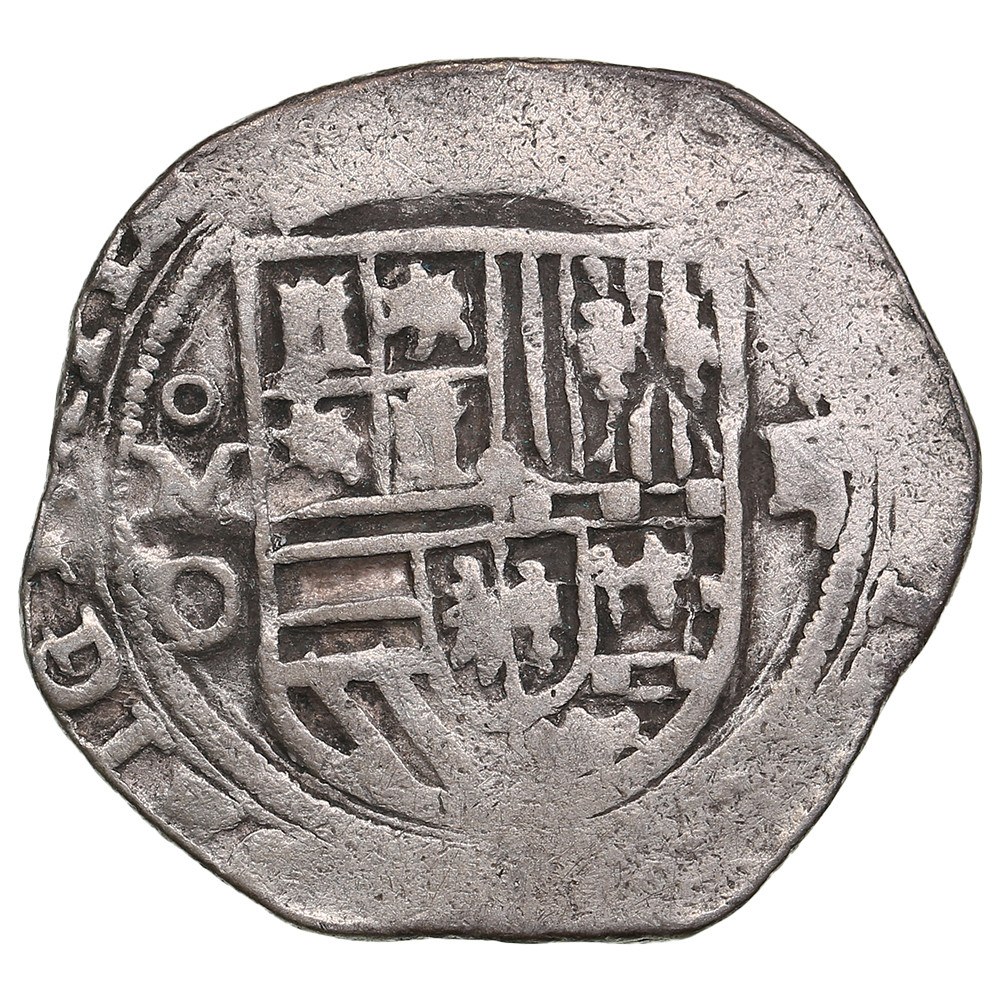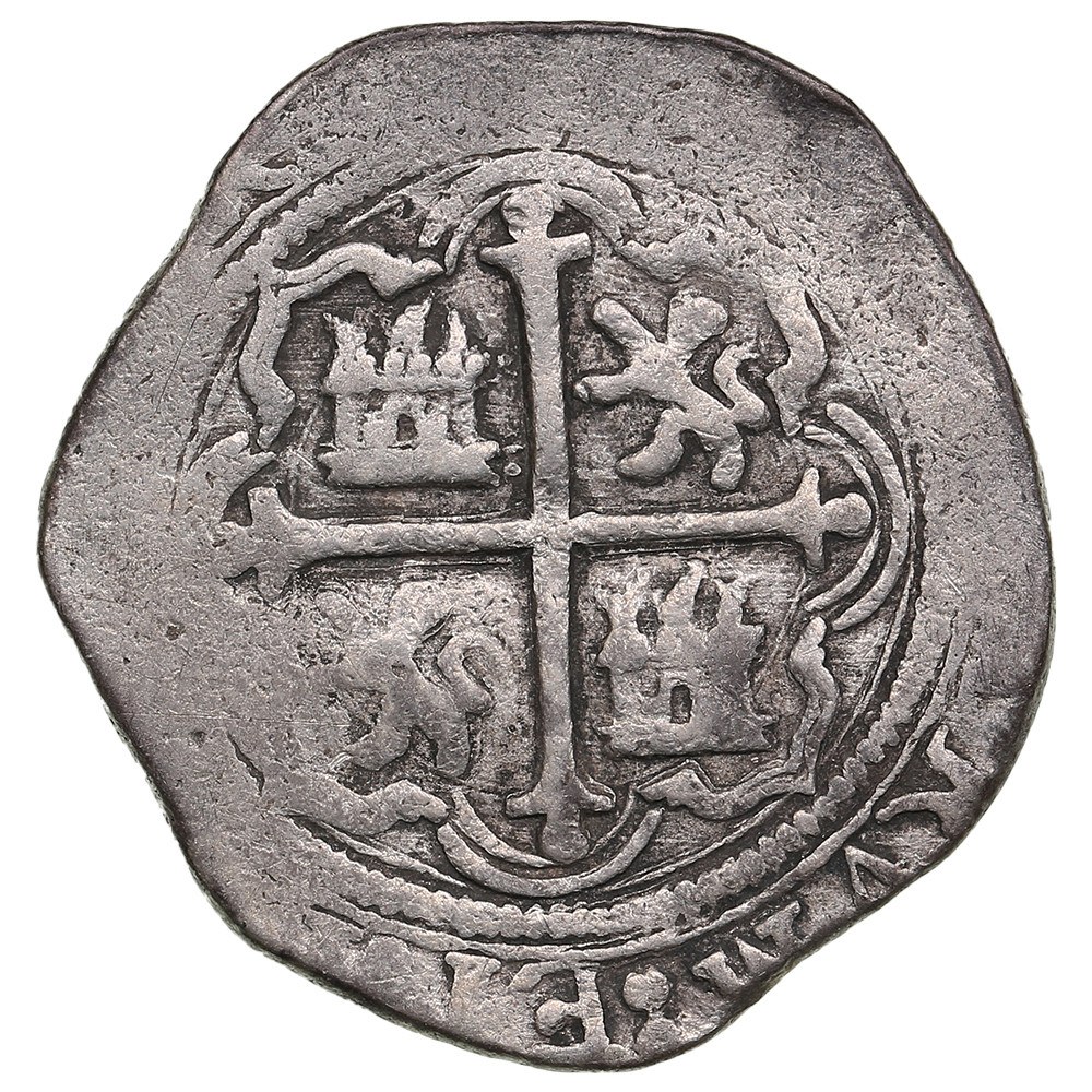 6.71g. VF/VF. Macuquina (Cob) issue. Obv.: Crowned coat of arms; to left, mintmark Mo and assayer’s initial O; to right, denomination II; “PHILIPPVS II DEI GRATIA”. Rev.: Cross with castles and lions, in octolobe; “HISPANIARVM:ET:INDIARVM REX”. KM MB 31.