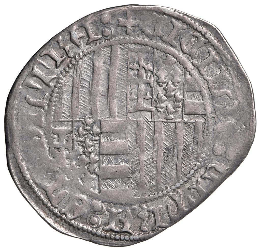 AQUILA Alfonso I d’Aragona (1442-1458) Reale - MIR 80 AG (g 4,14) R Con cartellino accompagnatorio di un ex listino di Numismatica De Falco di Napoli.