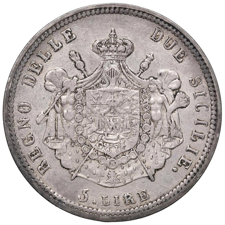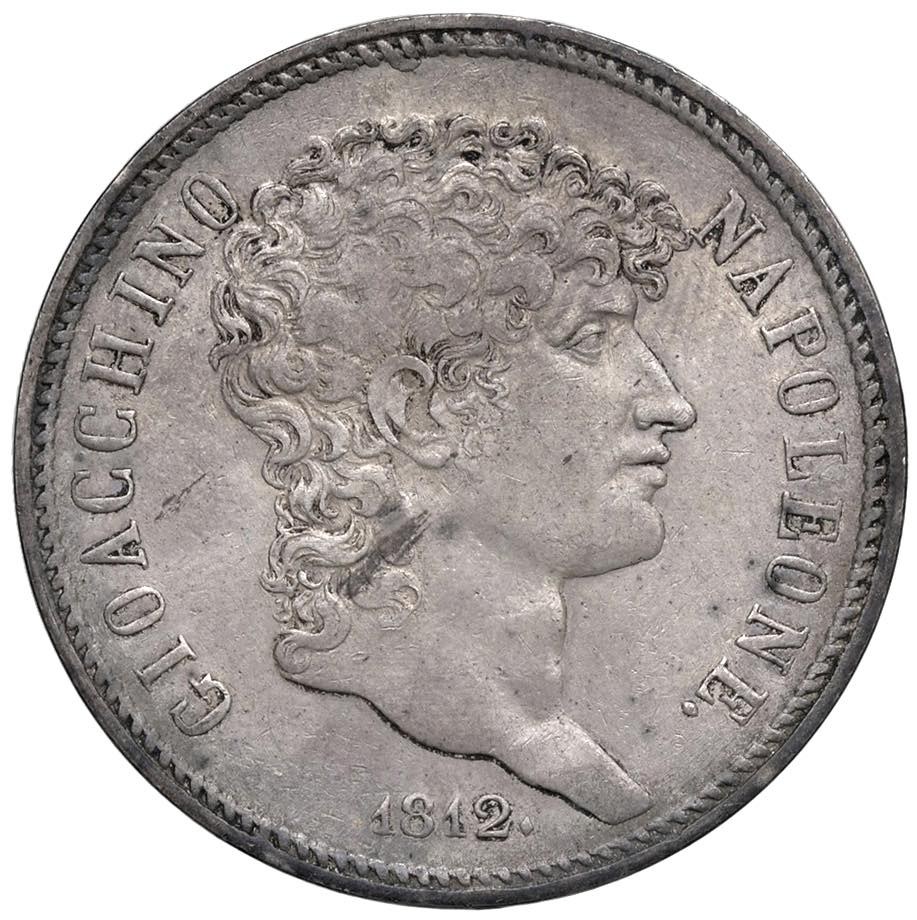 NAPOLI Gioacchino Murat (1808-1815) 5 Lire 1812 ♦ - Magliocca 416 (ed. 2025) (questo esemplare fotografato) AG (g 24,95) RRRR Il 19 maggio 1811, a seguito della legge n° 975, re Gioacchino introdusse nel Regno delle due Sicilie, a decorrere dal 1° gennaio 1812, la monetazione decimale pura a base di lire e centesimi oltre alle monete che già circolavano nel Regno, uniformando così il sistema monetario a quello francese. L’unità monetaria fu la Lira d’argento al titolo di 900/1000 dal peso di g 5. La scelta venne dettata da esigenze legate alle transazioni e agli scambi commerciali con altri paesi dell’impero francese. Il cambiamento non avvenne subito perché temeva che il popolo napoletano, abituato a trattare con decimali diversi, non avrebbe inteso i vantaggi del cambiamento che era già stato attuato nel resto dell'Italia napoleonica. Il 5 Lire è la moneta da grosso modulo (circa 37-37,5 mm di diametro) molto collezionata, al pari del 12 Carlini, e nel 1812 vennero coniate le prime monete con questo valore. L’esemplare proposto è dissimile da tutti gli altri esemplari datati 1812 perché detiene interpunzioni formate da rombi al dritto dopo NAPOLEONE e dopo la data 1812, al rovescio dopo SICILIE e dopo il valore 5. Il conio, in sostanza perché con peculiarità diverse dagli altri del 1812 (ciuffo dei capelli, loro lunghezza e punta del collo) fu il precursore delle future 5 Lire datate 1813, un conio inteso intermedio e molto raro.
