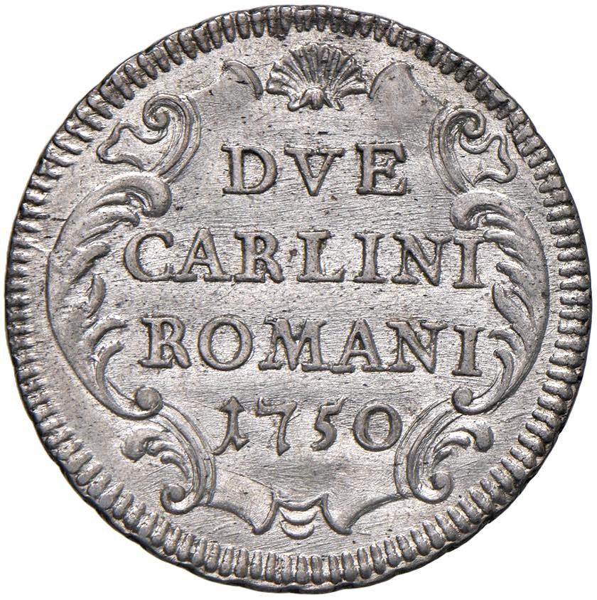 Benedetto XIV (1740-1758) 2 Carlini Romani 1750 An. X - Munt. 153a MI (g 5,69) R Insolita conservazione per la tipologia.
