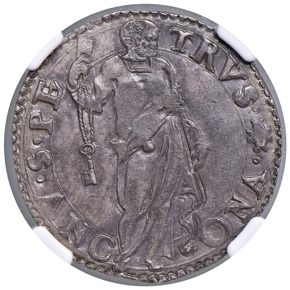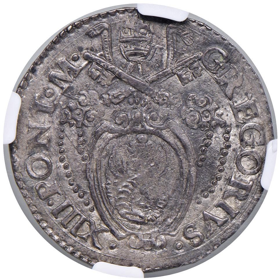 Gregorio XIII (1572-1585) Ancona - Testone - Munt. 206 AG In slab NGC AU 55 cod. 2795547-002