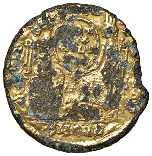Costanzo II (337-361) Solido falso d'epoca (Antiochia) Busto diademato a d. - R/ Roma e Costantinopoli sedute di fronte - RIC 83 AE dorato (g 4,49) Modesti depositi