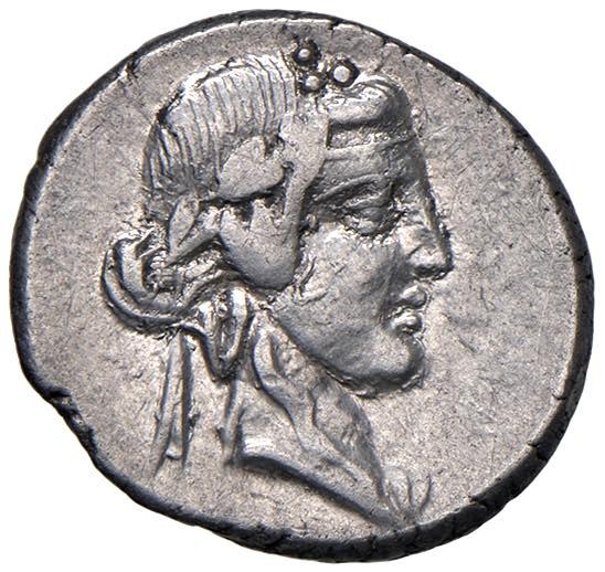 Roman coins Republic - Titia - Q. Titius - Denario (90 a.C.) Testa di Bac...