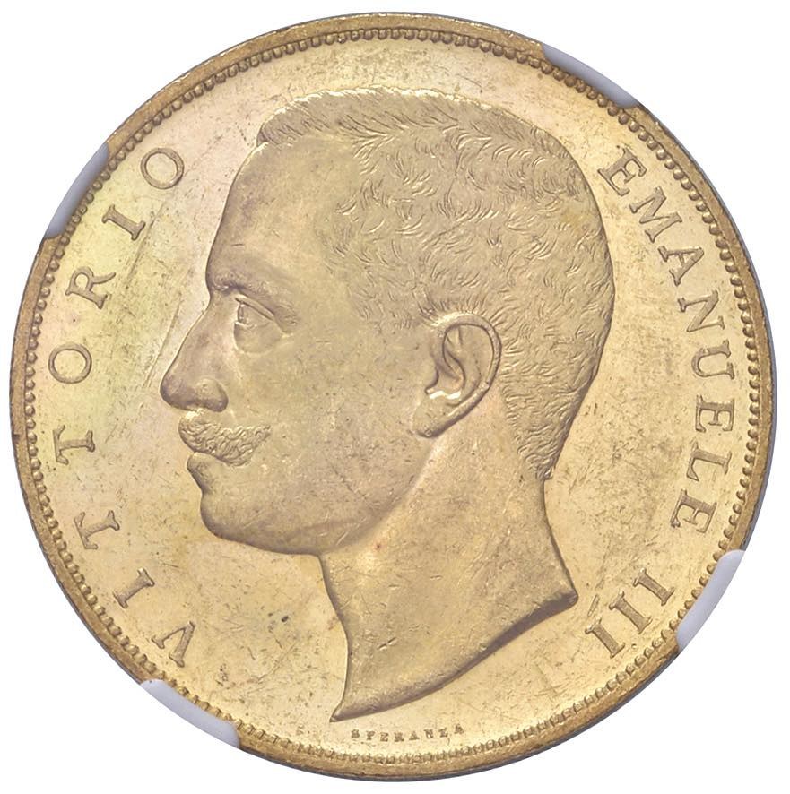 Vittorio Emanuele III (1900-1946) 100 Lire 1905 - Nomisma 1046 AU RR Esemplare di ottima qualita' con fondi speculari. In Slab NGC MS 62 PL n. 6637279-011