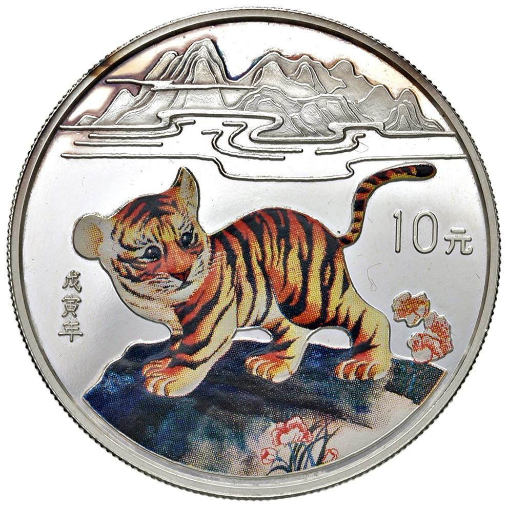 Foreign coins - CINA 10 Yuan 1998 anno della tigra multicolor - KM...