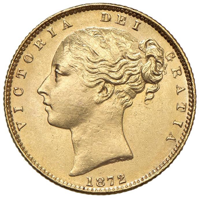 REGNO UNITO Vittoria (1837-1901) Sterlina 1872 - Spink 3853B AU (g 8) Ottimo esemplare dal metallo brillante.