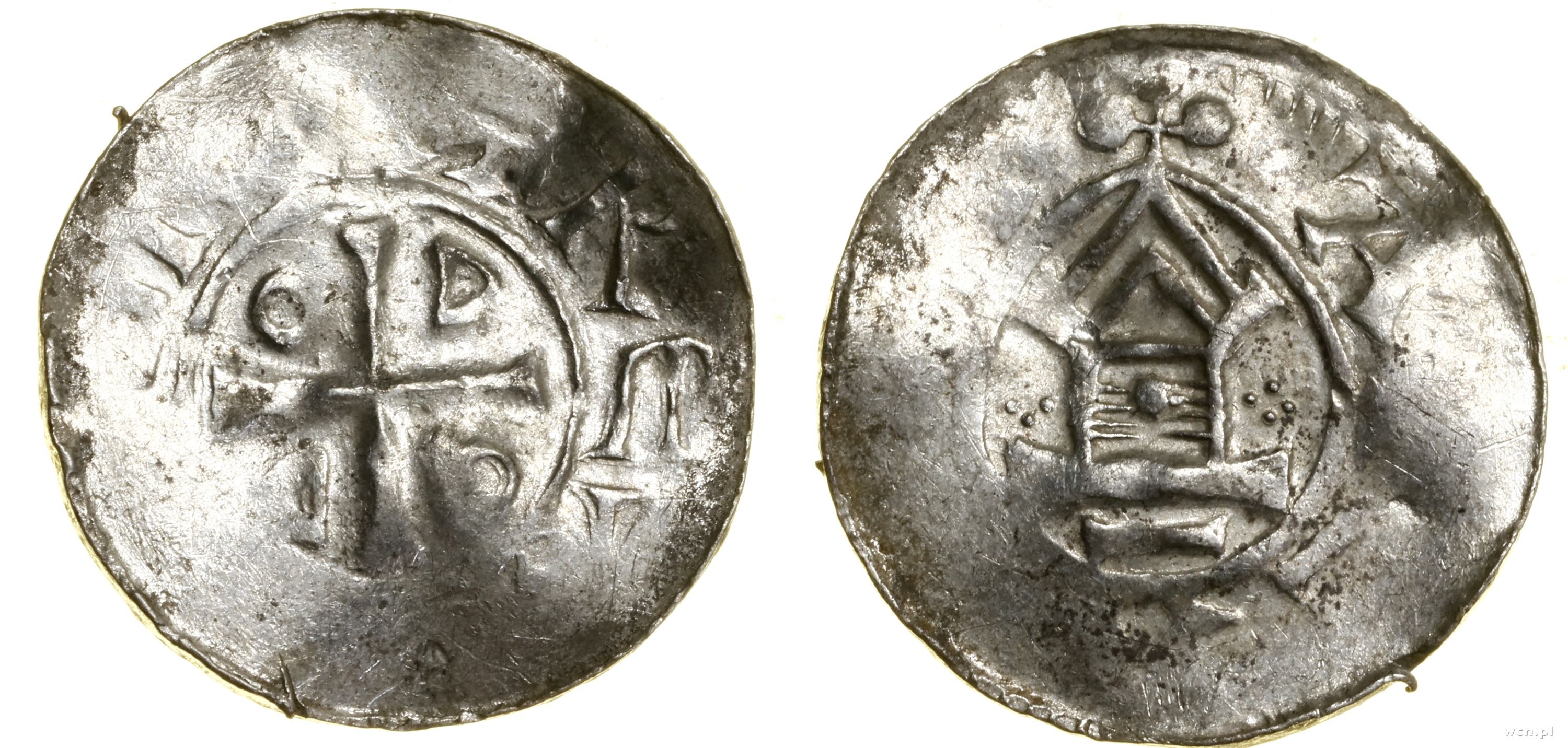 Aw: Krzyż, w kątach O-D-O-D, …REX, Rw: Kaplica z poziomymi belkami, w śrdoku kulka, po bokach po cztery kulki, ATEA…
