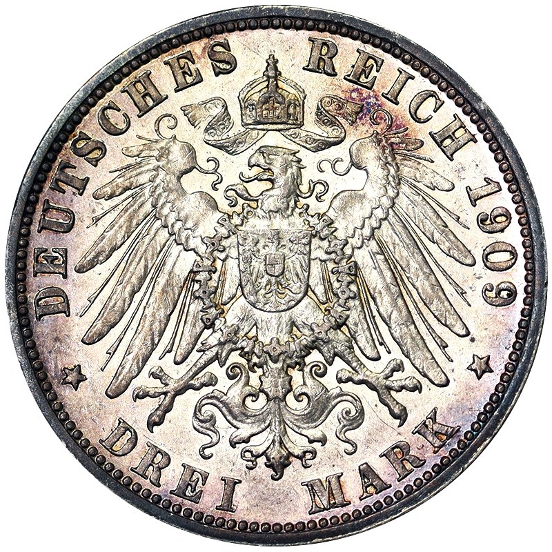 Germany, Otto, 3 Mark 1909, D Munich