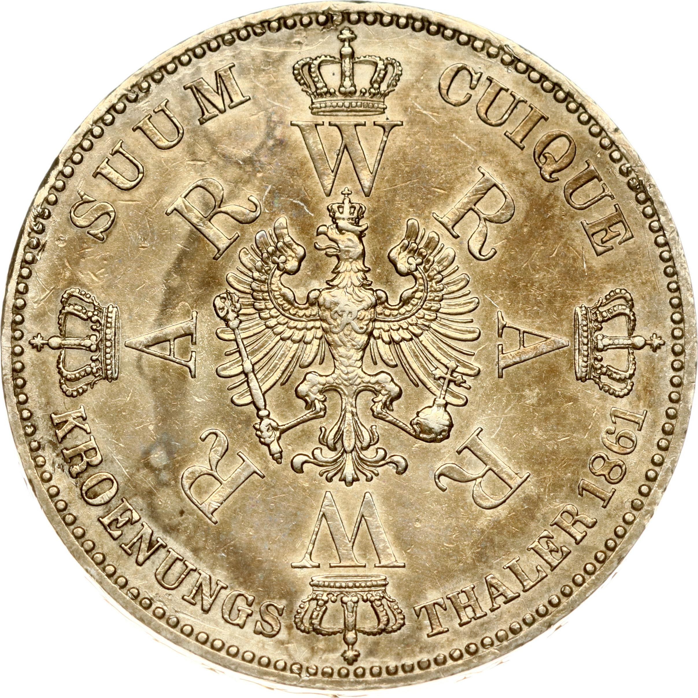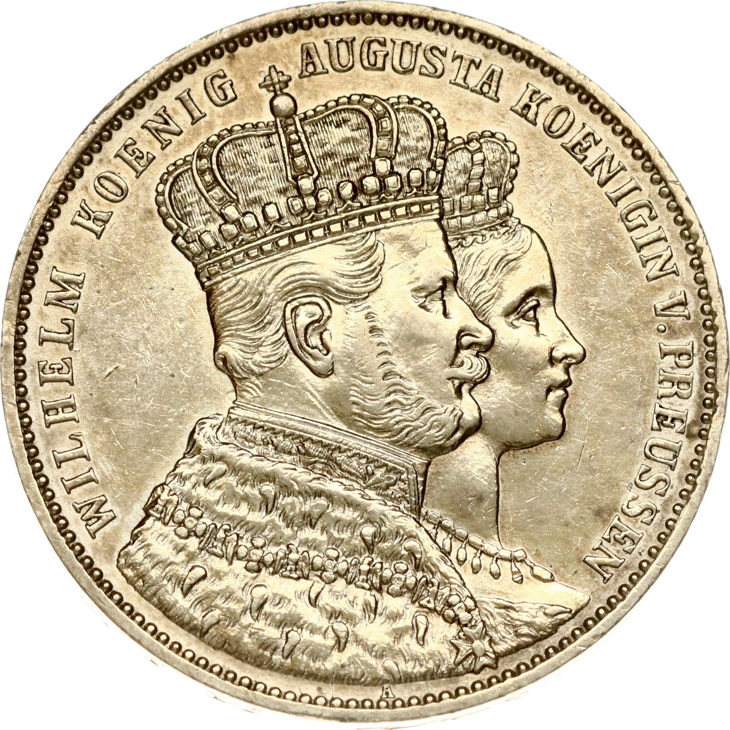 Germany, Prussia. Wilhelm I (1861-1888). Taler 1861 A, Coronation of Wilhelm and Augusta. Silver 18.47 g. KM 488, Dav 778. Small scratches.