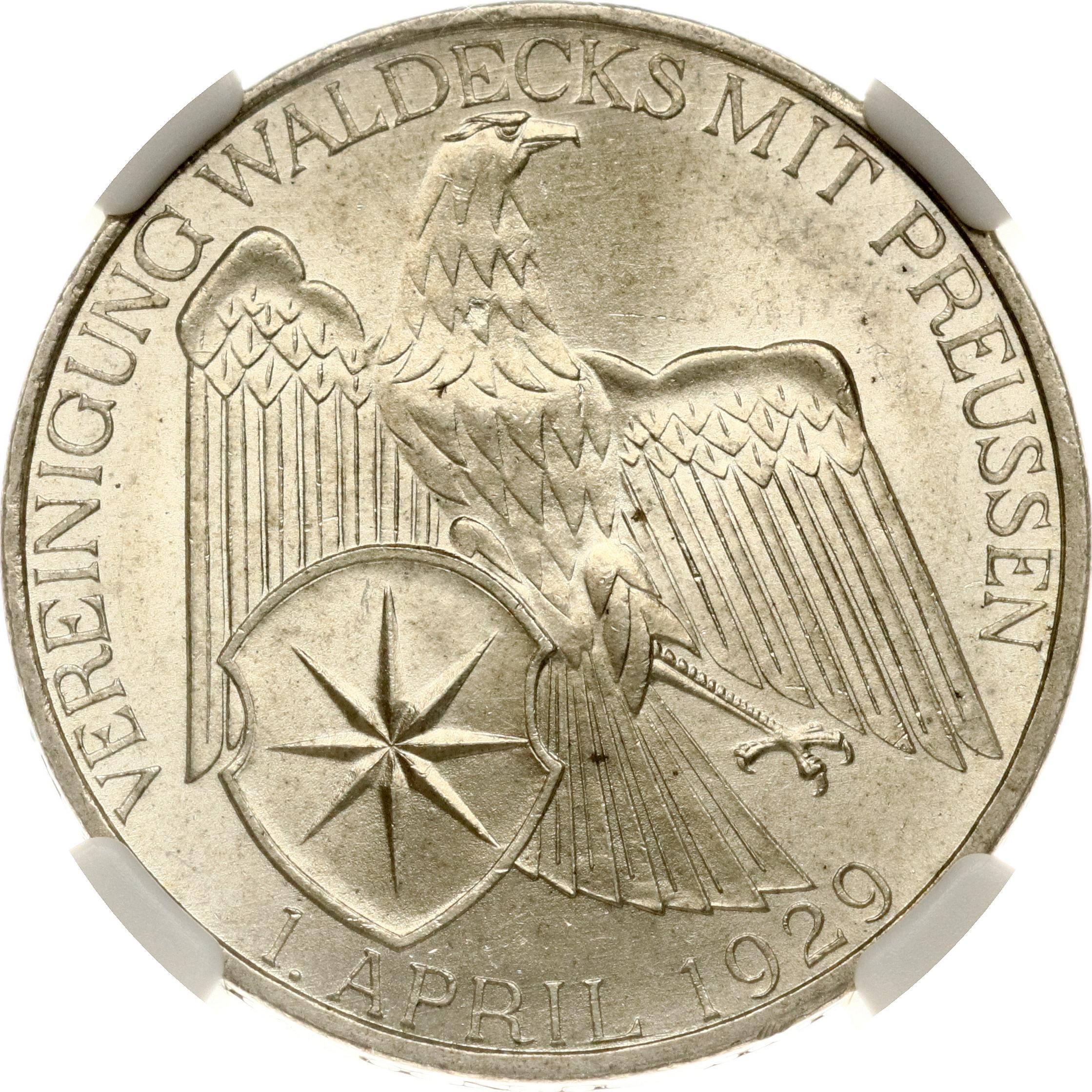 Germany Weimar Republic 3 Reichsmark 1929 A Vereinigung Waldeck NGC MS 64+
