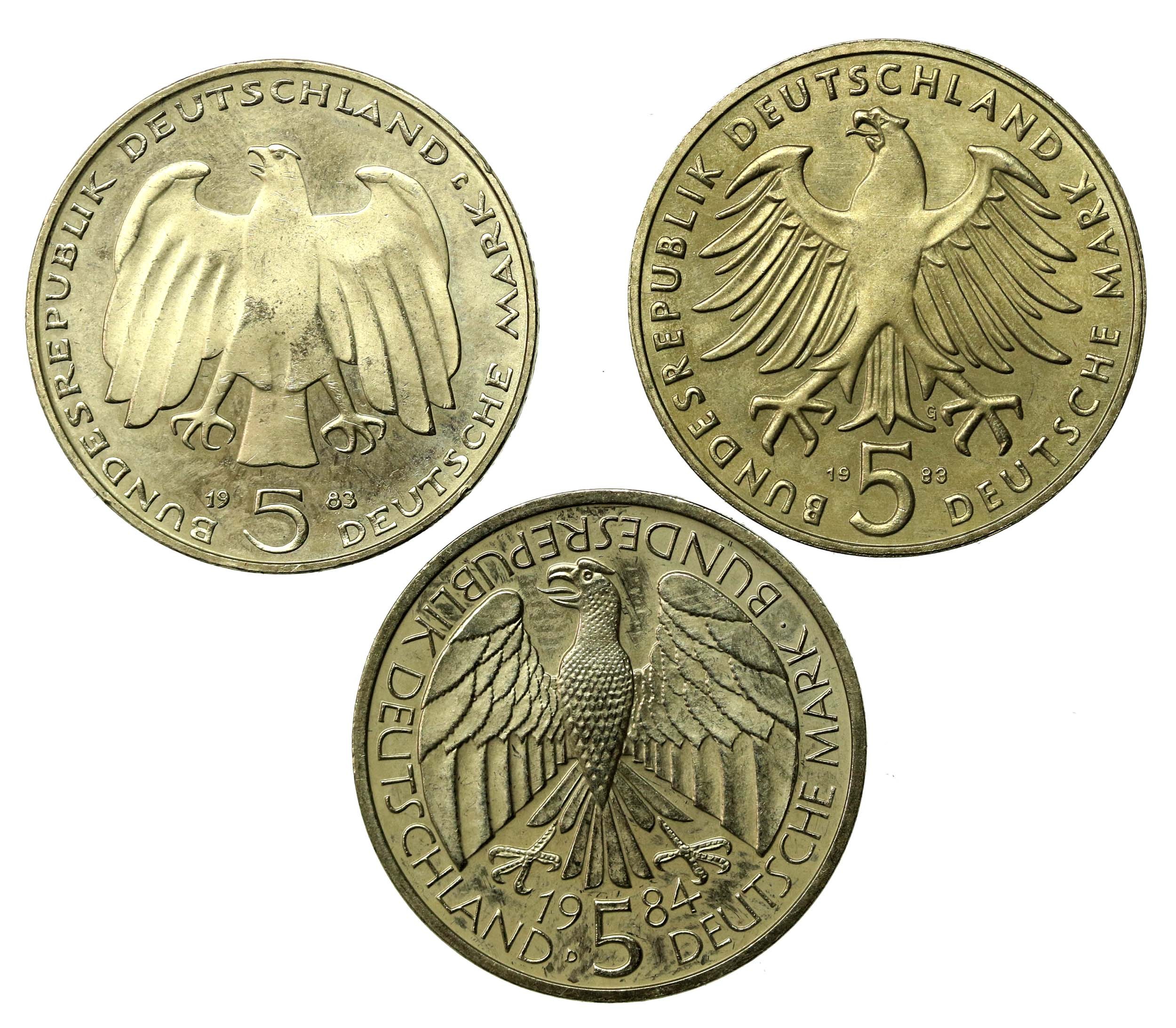 Niemcy, RFN, zestaw 5 marek 1983-1984. Razem 3 szt.