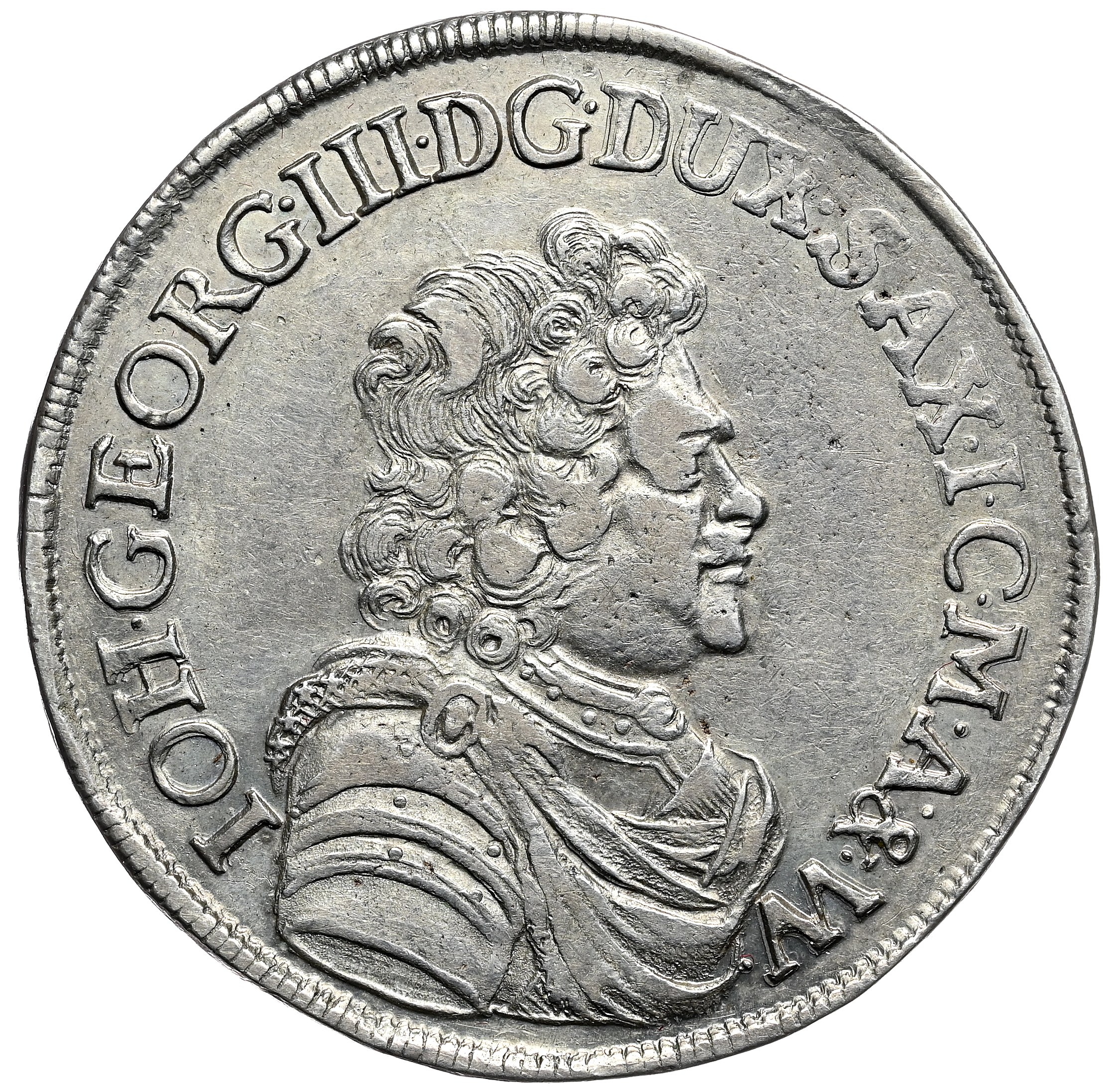 Ponadprzeciętna moneta guldenowa z popiersiem i tytulaturą Jana Jerzego III. Dobry detal, niewielkie ślady obiegu, patyna.