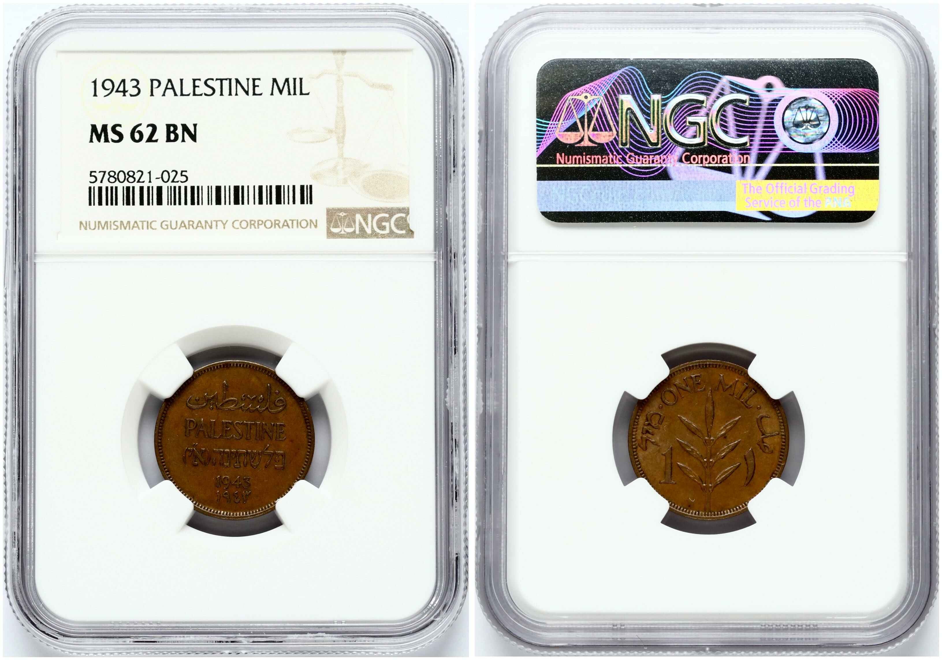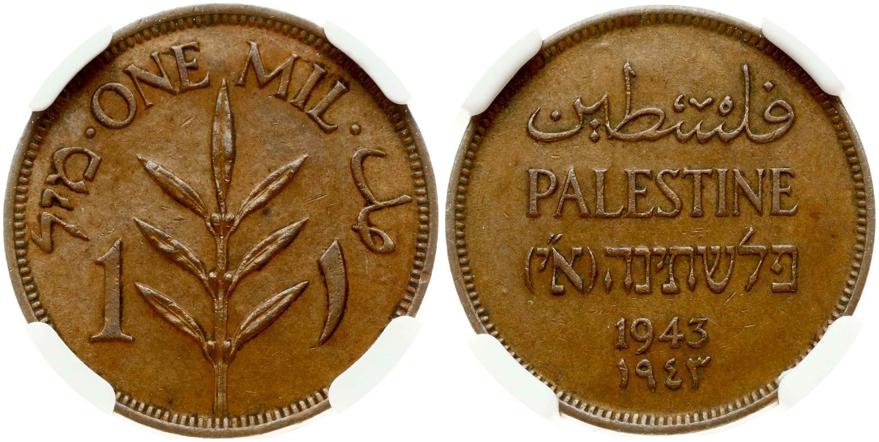 Palestine 1 Mil 1943 NGC MS 62 BN
