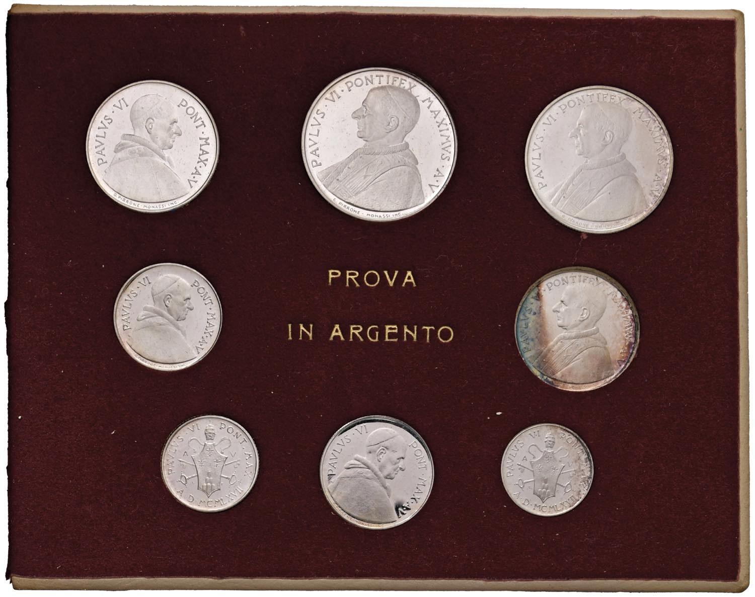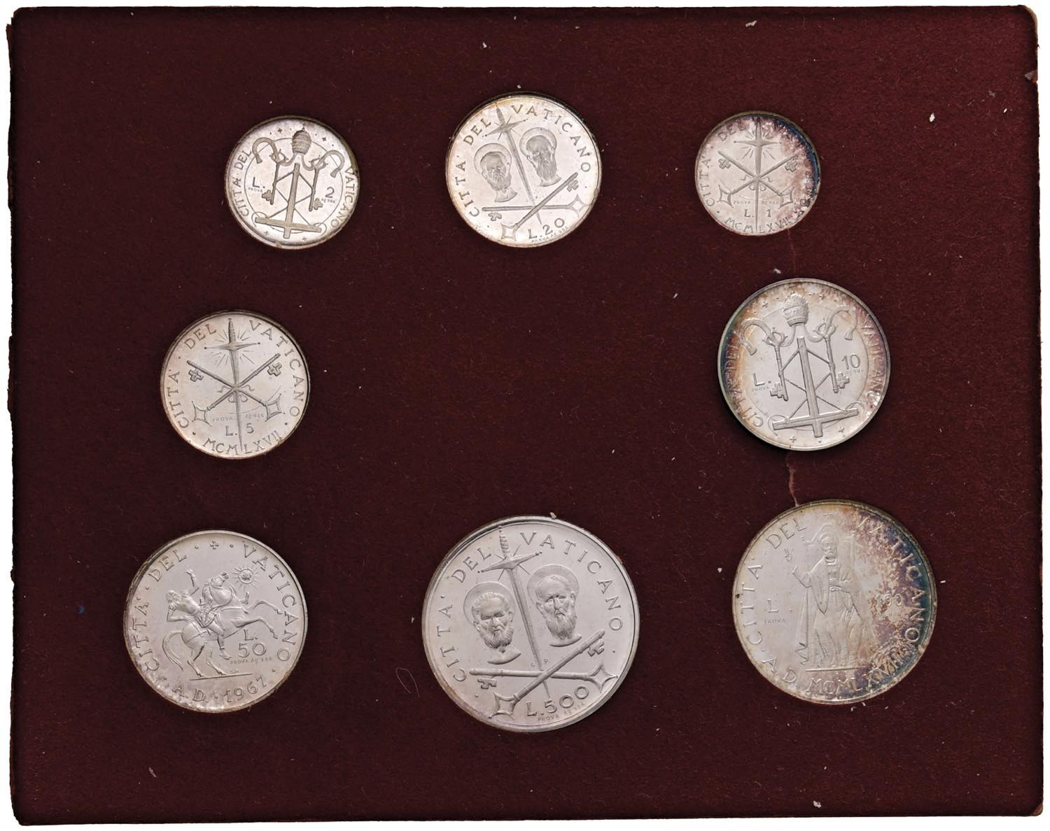 Paolo VI (1963-1978) Divisionale 1967 A. V Prova in argento - AG RRR Tiratura di 100 serie complete. Lotto di otto monete in cartoncino